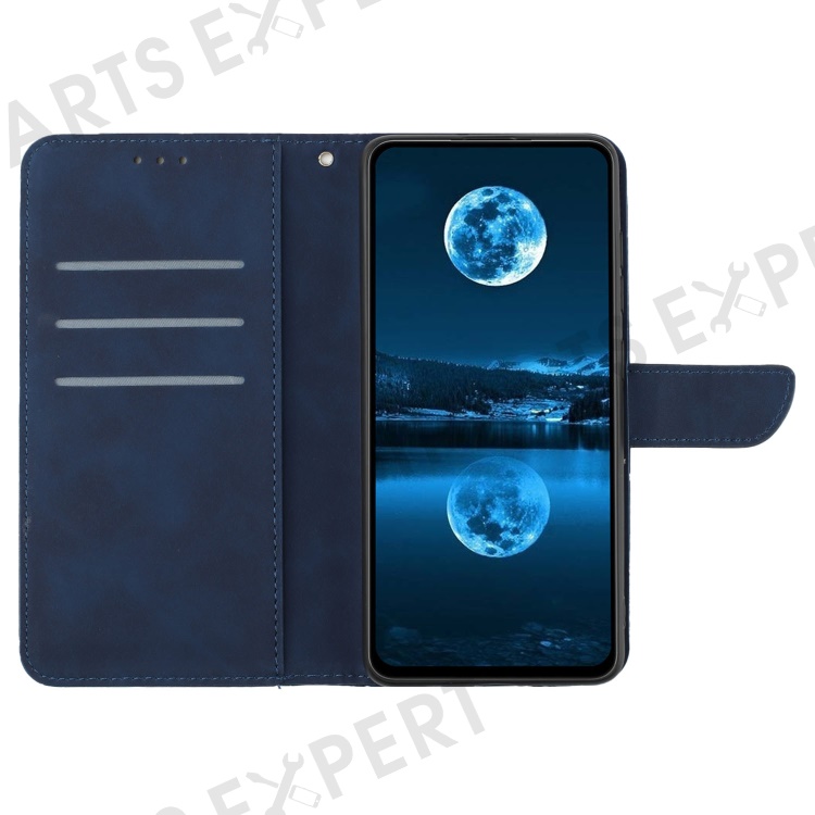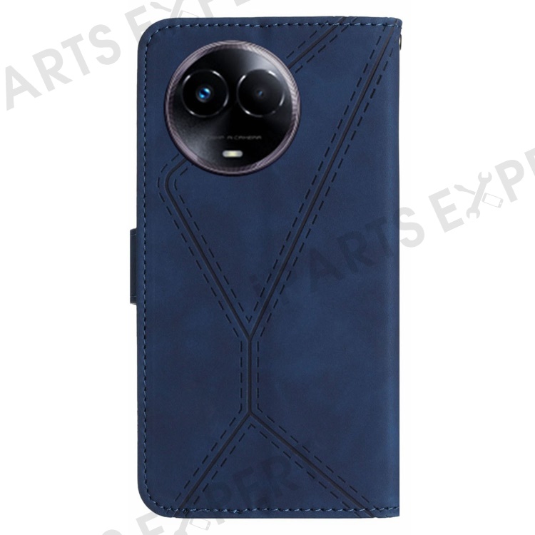 HT05 For Realme 11x 5G / 11 5G (Global) Imprinted Line Leather Phone Case Wallet Stand Phone Cover - Blue