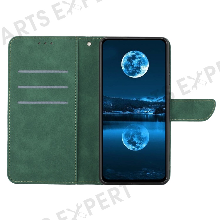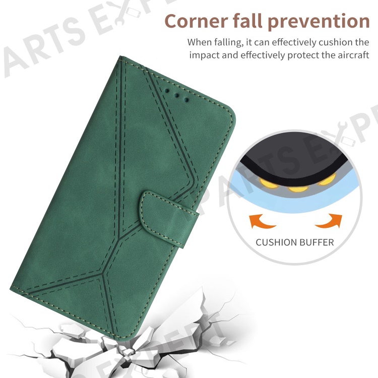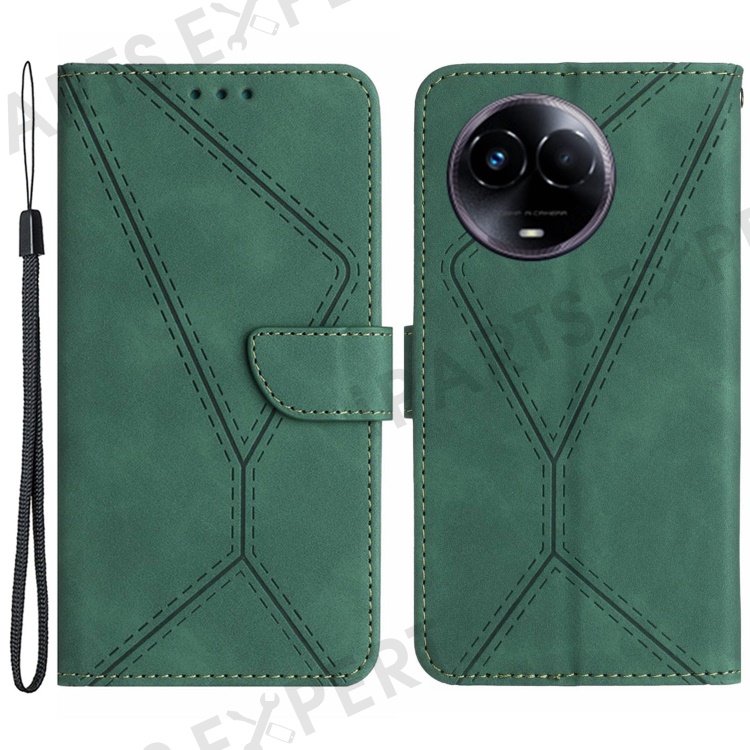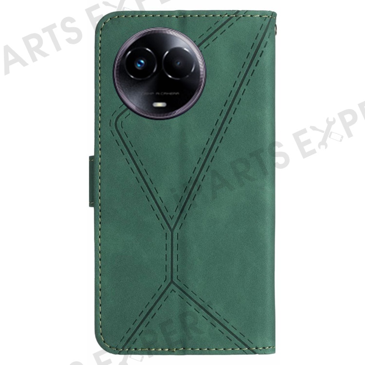 HT05 For Realme 11x 5G / 11 5G (Global) Imprinted Line Leather Phone Case Wallet Stand Phone Cover - Green