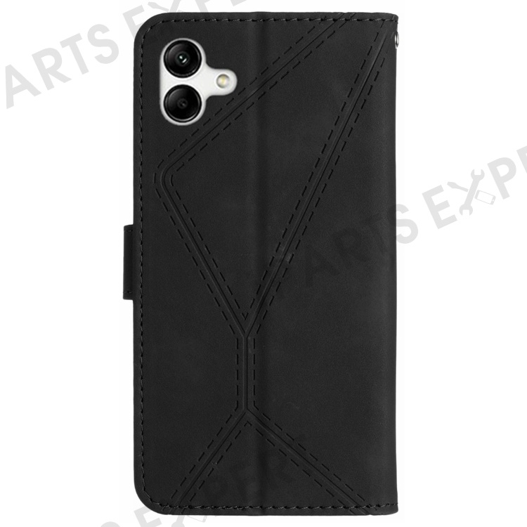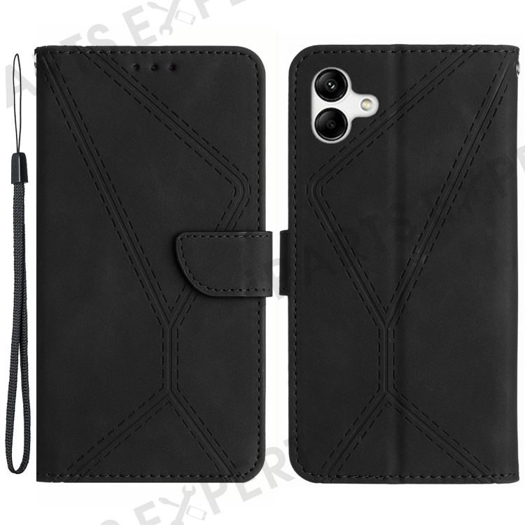 HT05 For Samsung Galaxy A05 4G Case PU Leather Imprinted Line Phone Stand Cover - Black