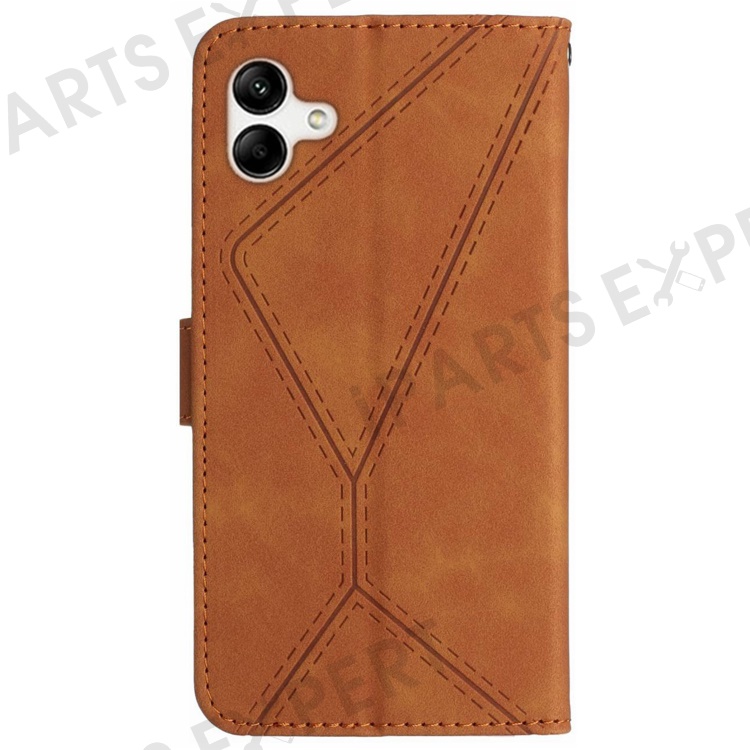 HT05 For Samsung Galaxy A05 4G Case PU Leather Imprinted Line Phone Stand Cover - Brown