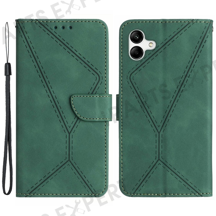 HT05 For Samsung Galaxy A05 4G Case PU Leather Imprinted Line Phone Stand Cover - Green