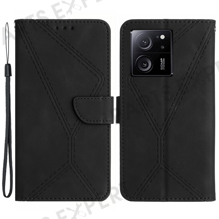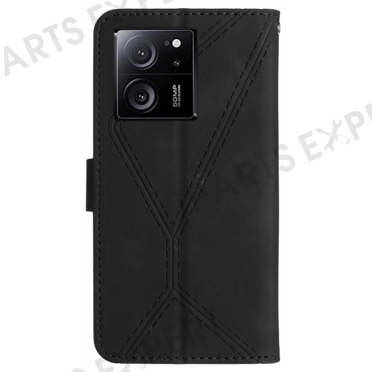HT05 For Xiaomi 13T / 13T Pro Case Imprinted PU Leather Wallet Phone Stand Cover - Black