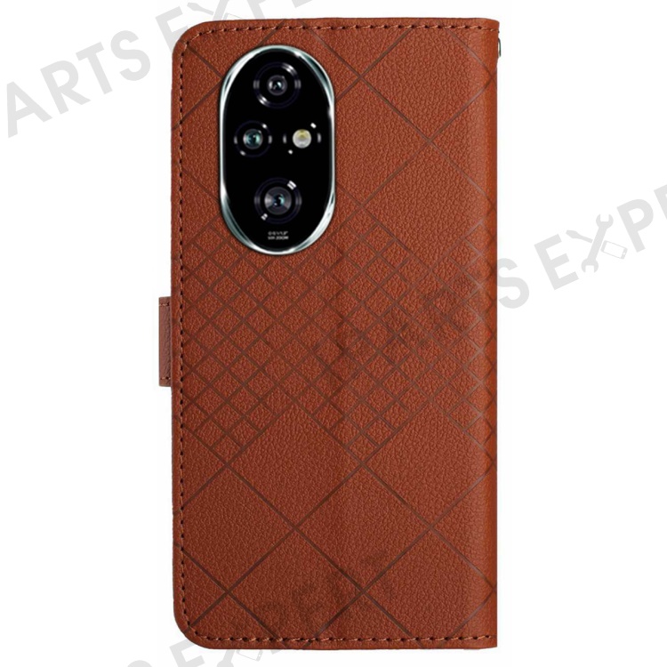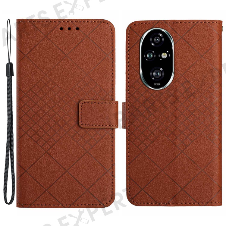 HT06 For Honor 200 Pro 5G Case Rhombus Imprinted Leather Wallet Phone Cover - Brown
