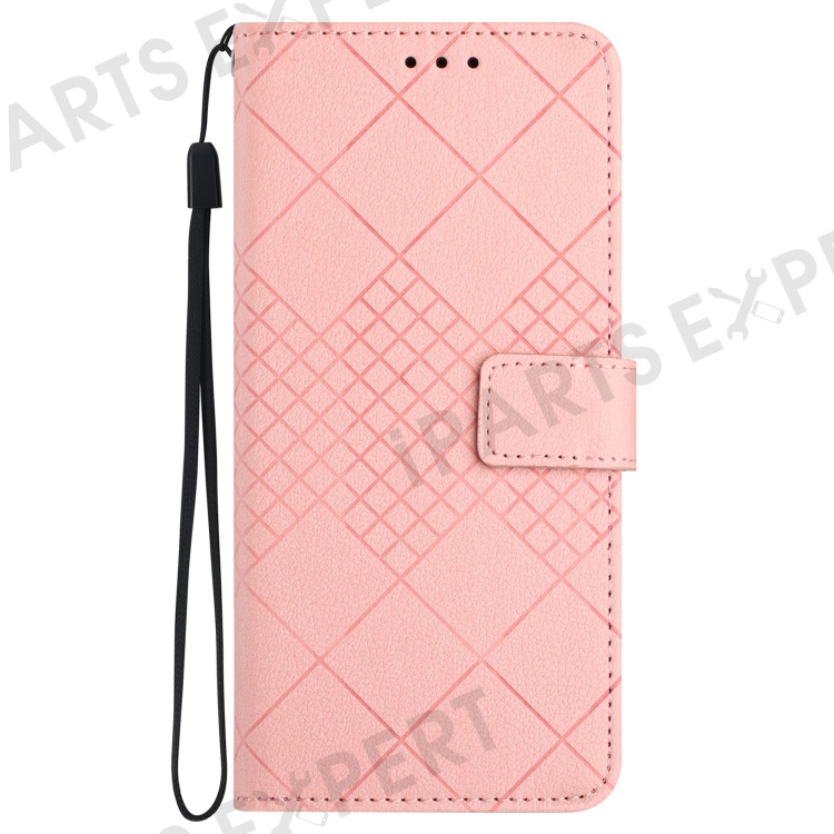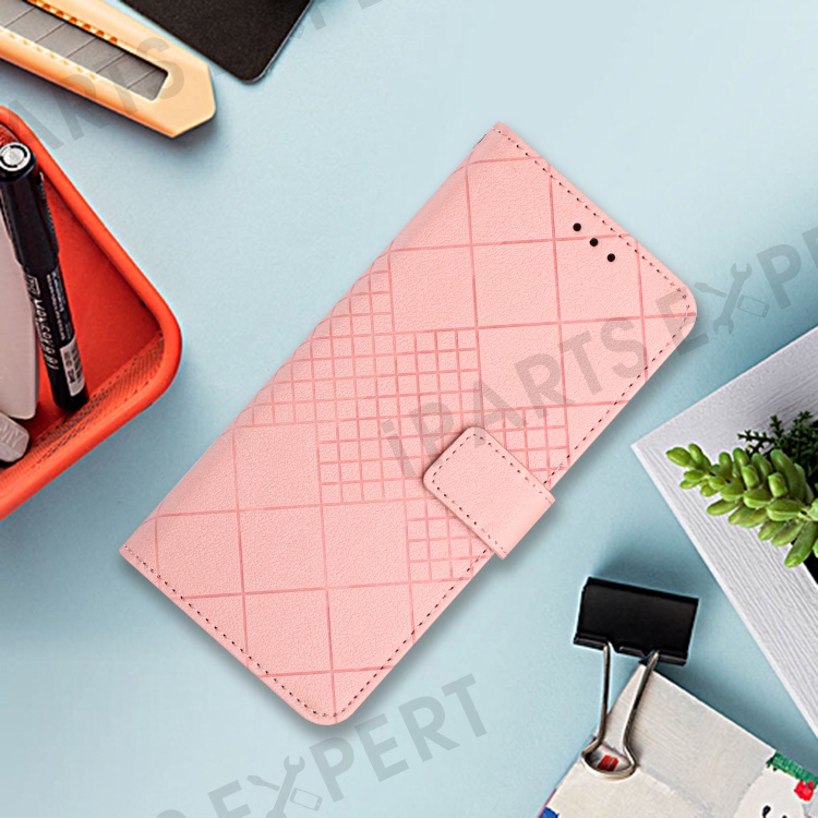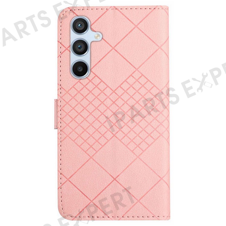 HT06 For Samsung Galaxy M35 5G Case Rhombus Litchi Texture Leather Phone Cover - Pink