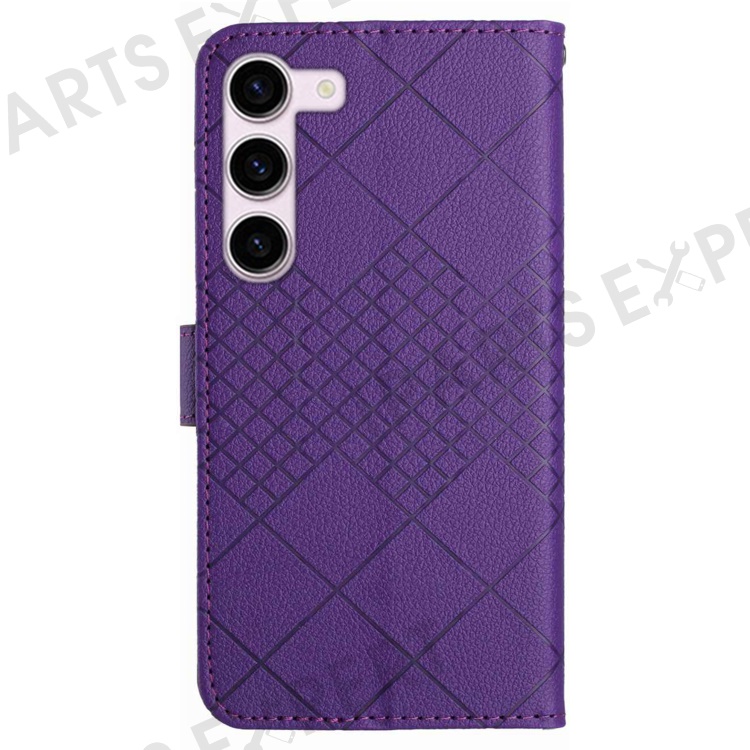 HT06 For Samsung Galaxy S23 Case PU Leather Rhombus Pattern Stand Mobile Phone Cover - Dark Purple