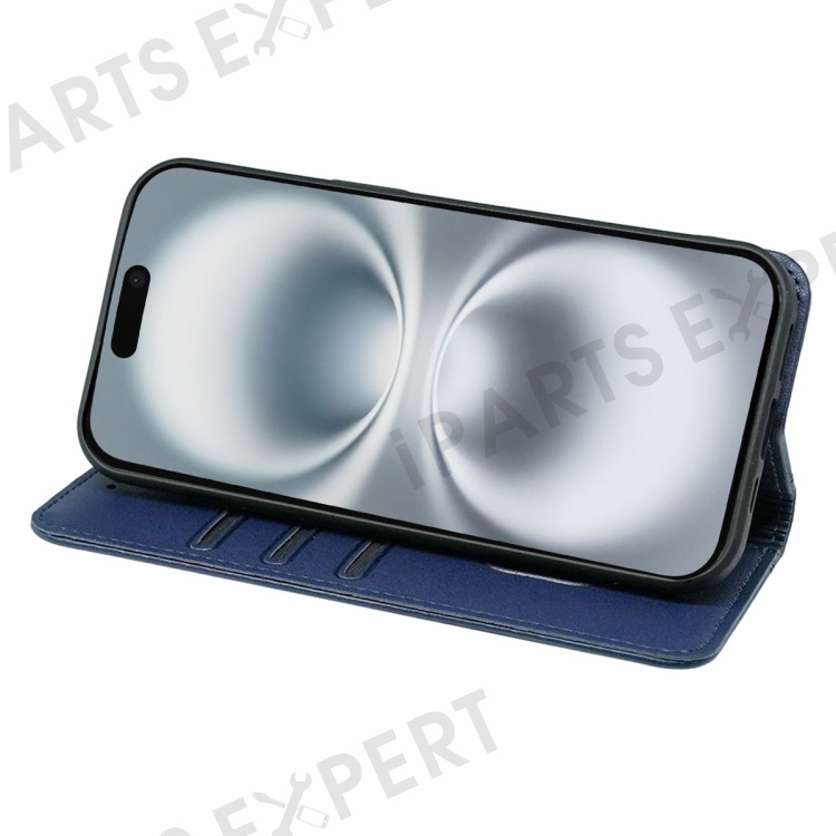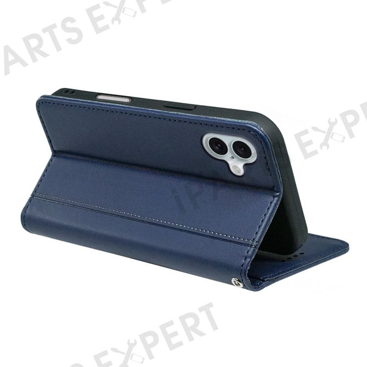 HX01 For iPhone 16 Plus Wallet Case Magnetic Closing PU Leather Phone Cover - Blue