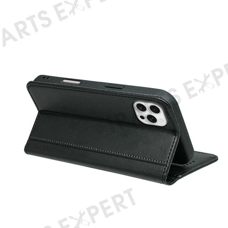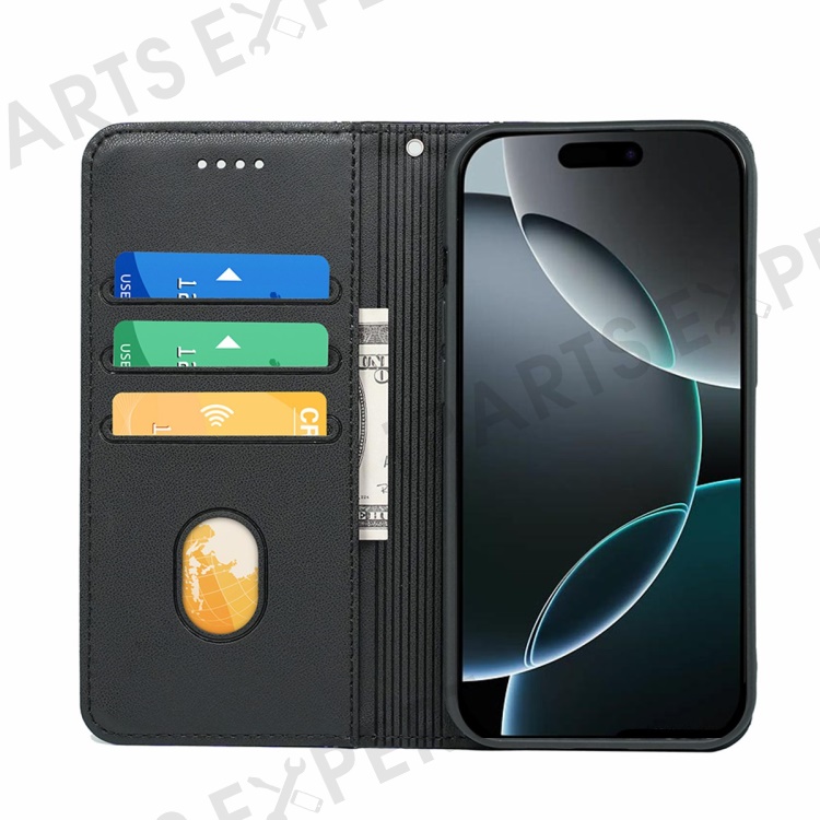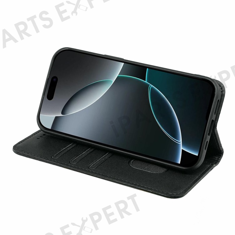 HX01 For iPhone 16 Pro Wallet Case Magnetic Closing PU Leather Phone Cover - Black