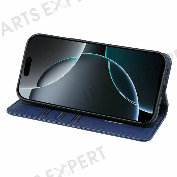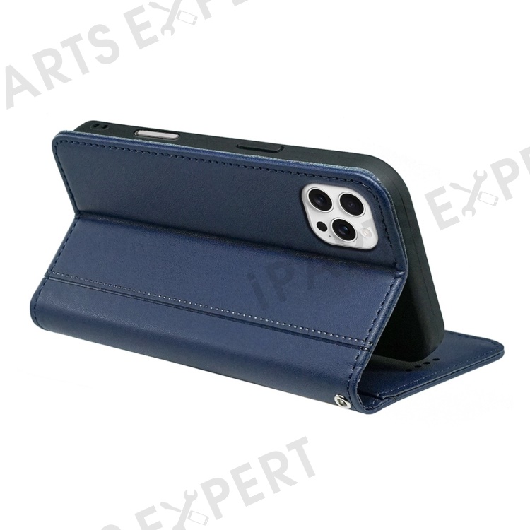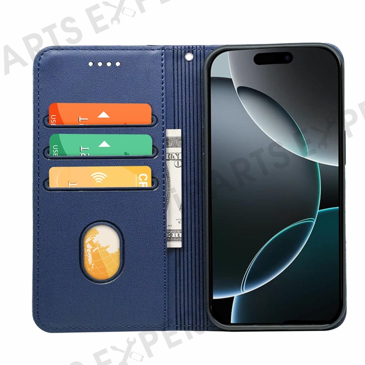 HX01 For iPhone 16 Pro Wallet Case Magnetic Closing PU Leather Phone Cover - Blue