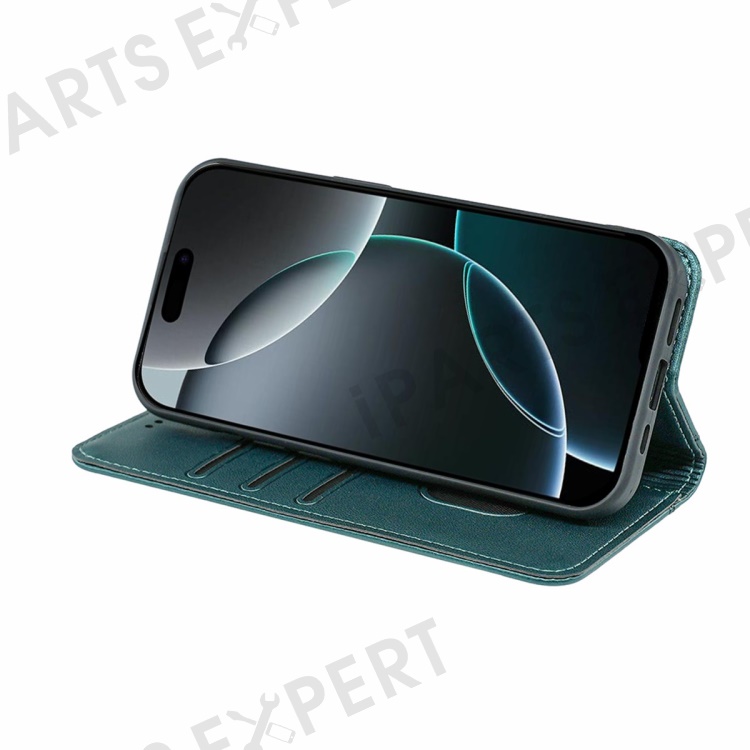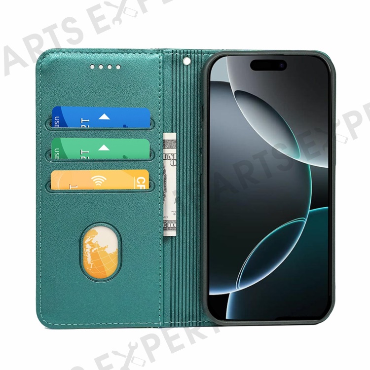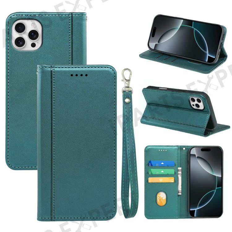 HX01 For iPhone 16 Pro Wallet Case Magnetic Closing PU Leather Phone Cover - Green