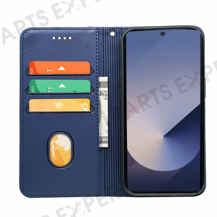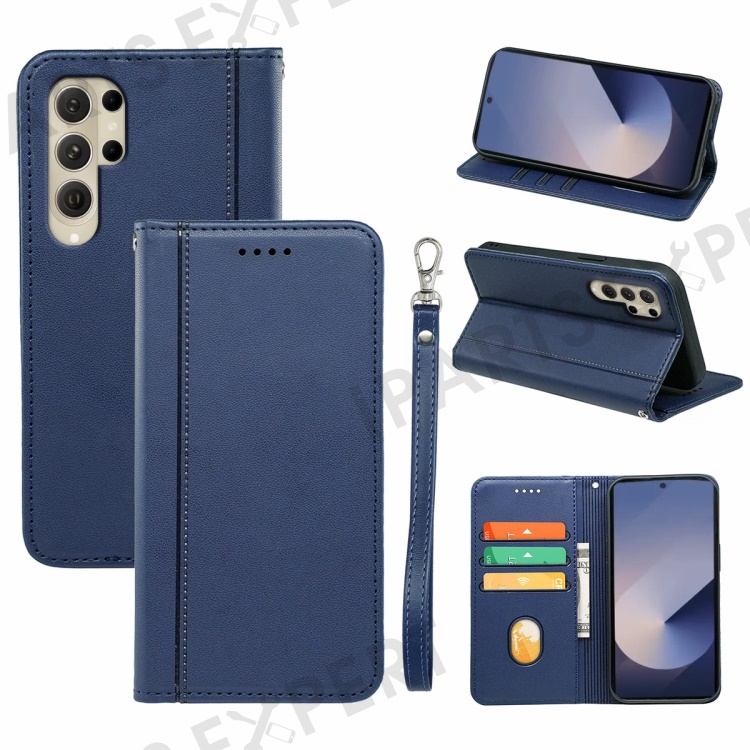 HX01 For Samsung Galaxy S25 Ultra Wallet Case Magnetic Closing PU Leather Phone Cover - Blue