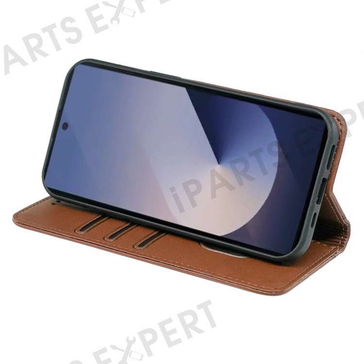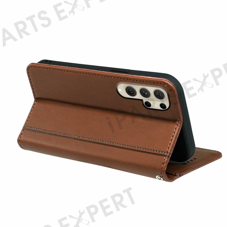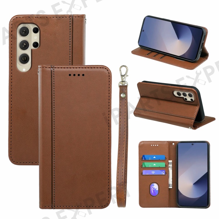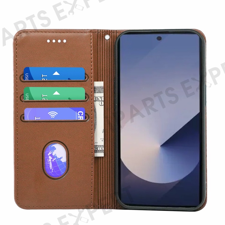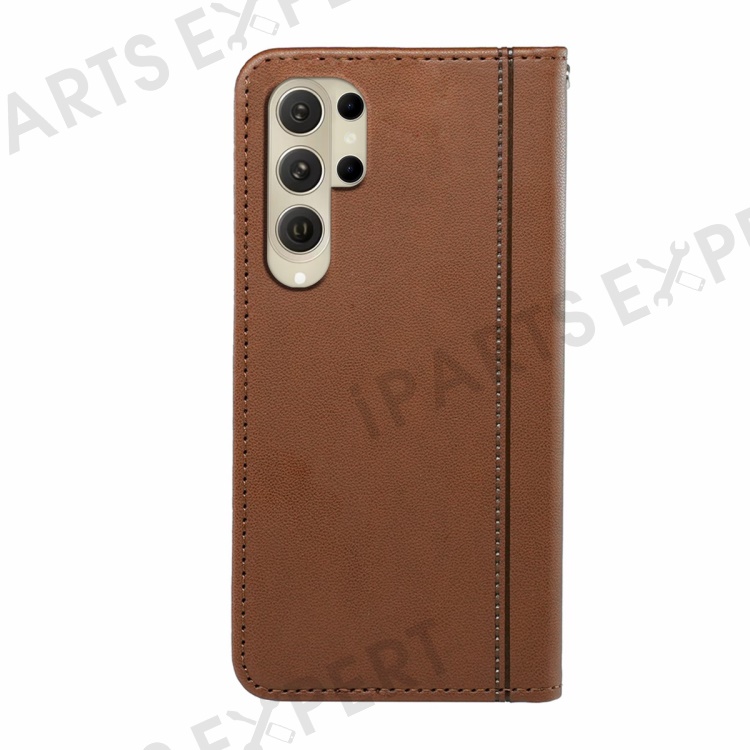 HX01 For Samsung Galaxy S25 Ultra Wallet Case Magnetic Closing PU Leather Phone Cover - Brown