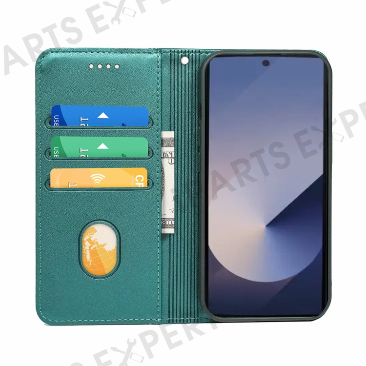HX01 For Samsung Galaxy S25 Ultra Wallet Case Magnetic Closing PU Leather Phone Cover - Green