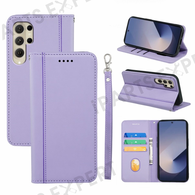 HX01 For Samsung Galaxy S25 Ultra Wallet Case Magnetic Closing PU Leather Phone Cover - Purple
