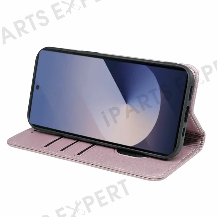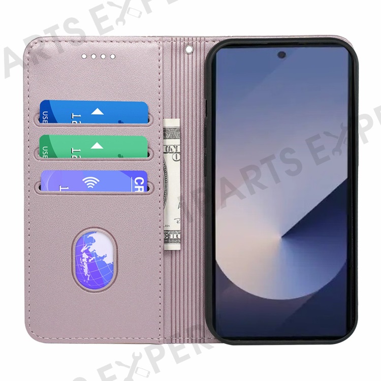 HX01 For Samsung Galaxy S25 Ultra Wallet Case Magnetic Closing PU Leather Phone Cover - Rose Gold