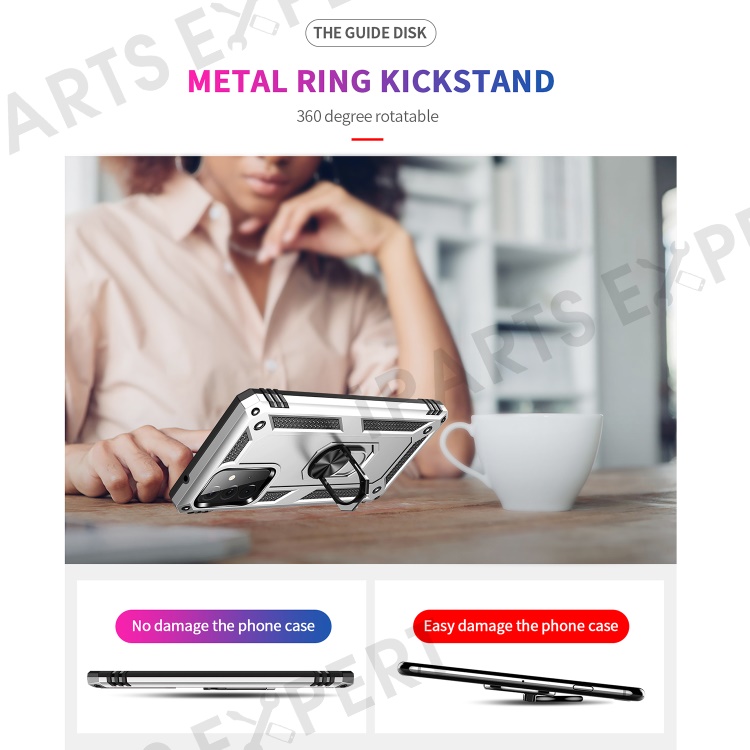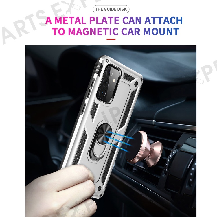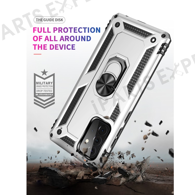 Hybrid PC + TPU Phone Case Shell Anti-Fall Finger Ring Kickstand for Samsung Galaxy A72 5G - Silver