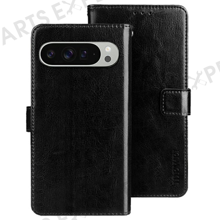 IDEWEI For Google Pixel 9 Pro XL Stand Case Crazy Horse Texture Leather Phone Cover - Black