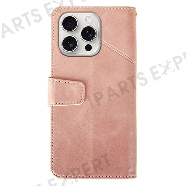 IDEWEI For iPhone 16 Pro Case Leather Wallet Phone Cover Stand Calf Texture - Pink