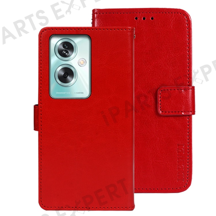 IDEWEI For Oppo A79 5G Case PU Leather Wallet Phone Cover Crazy Horse Texture Phone Shell - Red