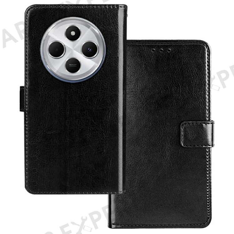 IDEWEI For Xiaomi Poco C75 4G / Redmi 14R 5G / 14C 4G Phone Case Card Slots Leather Cover Crazy Horse Texture - Black