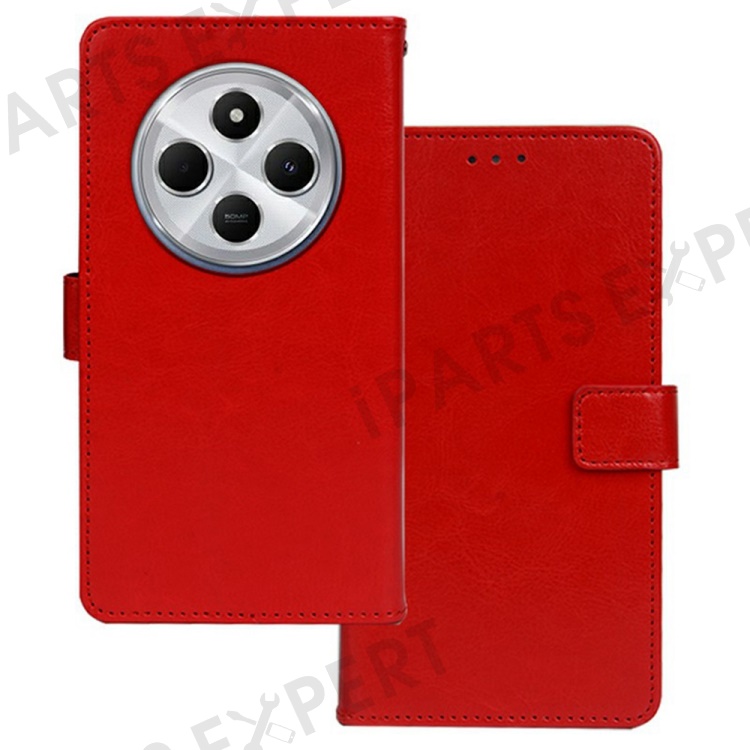 IDEWEI For Xiaomi Poco C75 4G / Redmi 14R 5G / 14C 4G Phone Case Card Slots Leather Cover Crazy Horse Texture - Red
