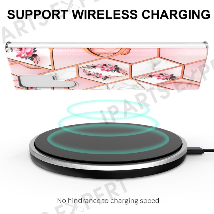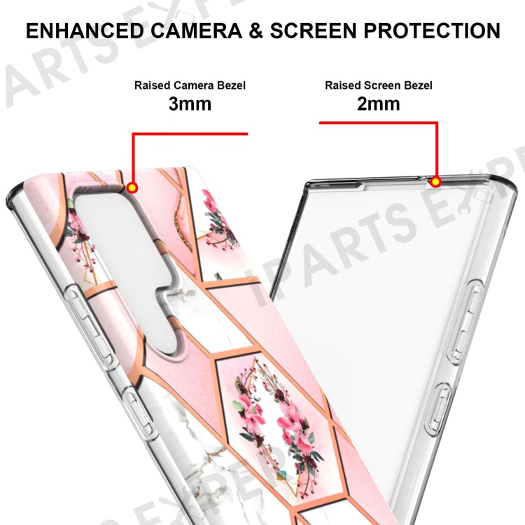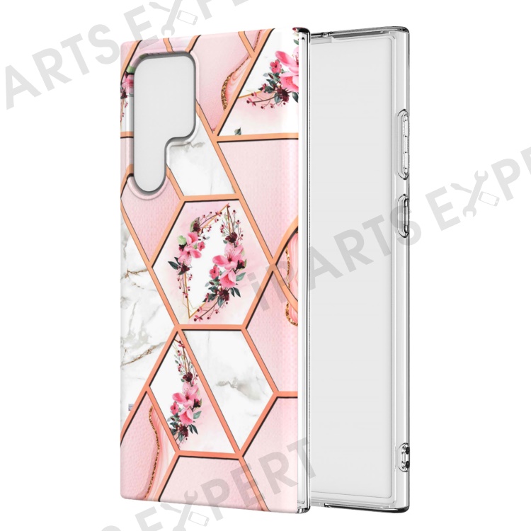 IML IMD Electroplating Soft Touch Marble Pattern TPU Shockproof Phone Case for Samsung Galaxy S22 Ultra 5G - Pink Flowers