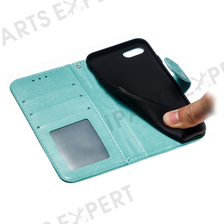 Imprint Mandala Flower Wallet Stand PU Leather Case for iPhone SE (2020)/SE (2022)/8/7 4.7 inch - Cyan