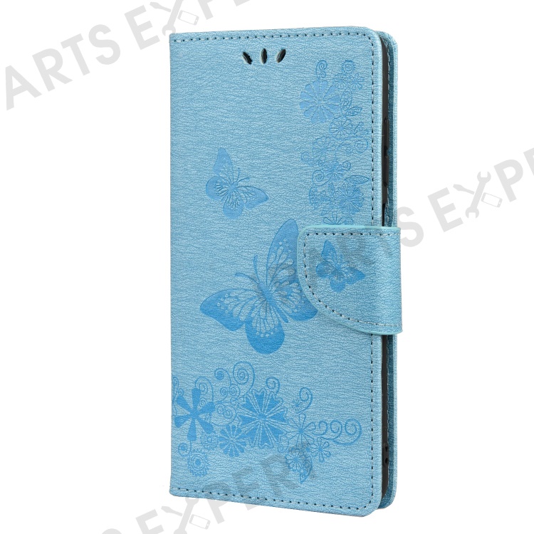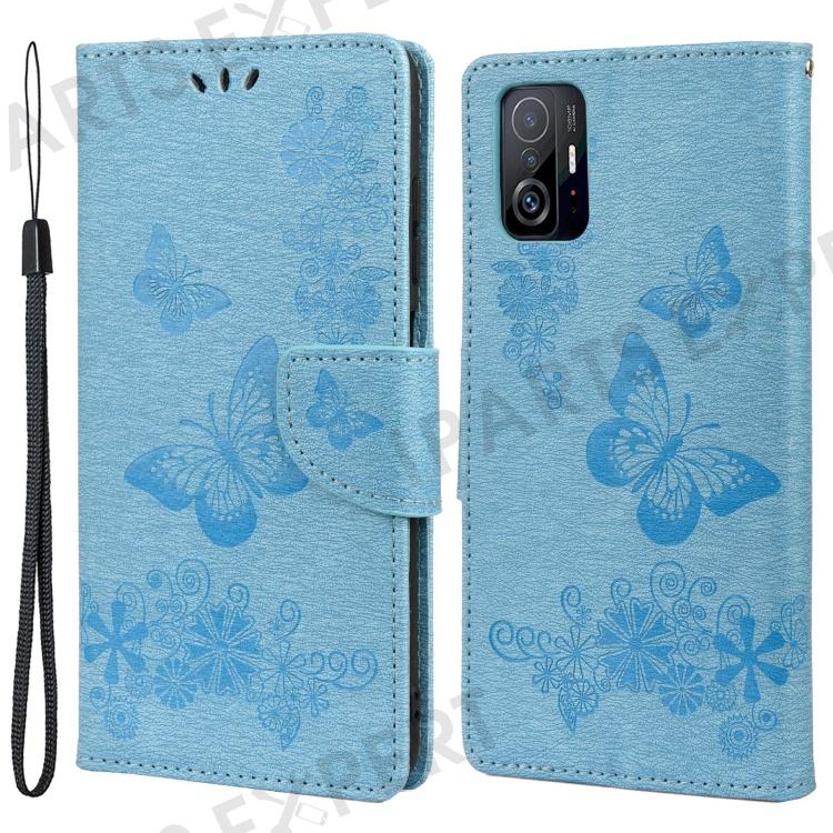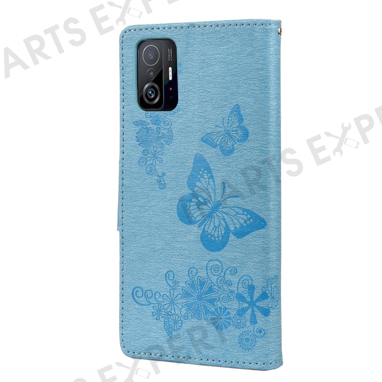 Imprinted Butterflies Flower Leather Wallet Stand Mobile Phone Case Shell Protector for Xiaomi 11T/11T Pro - Blue
