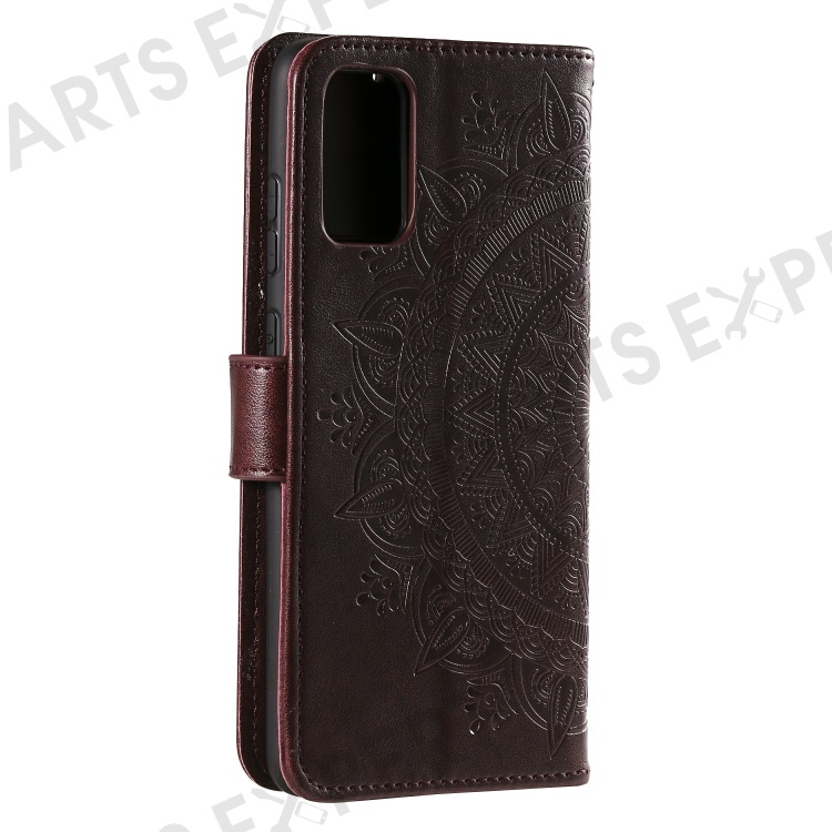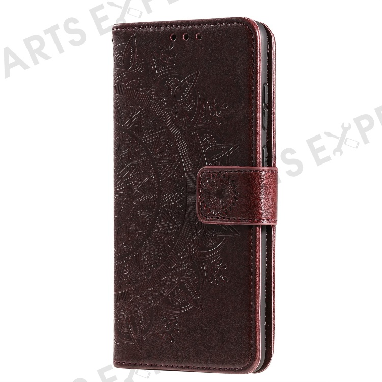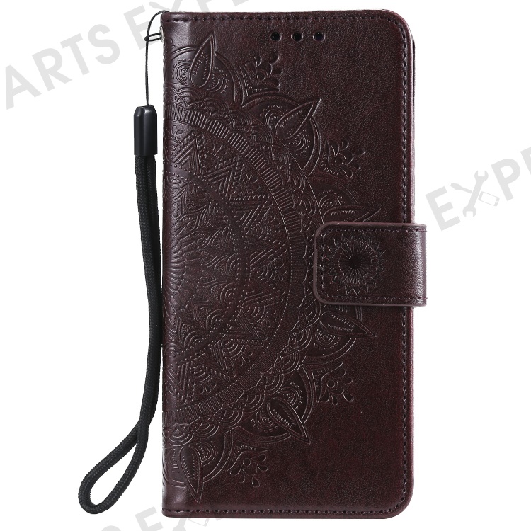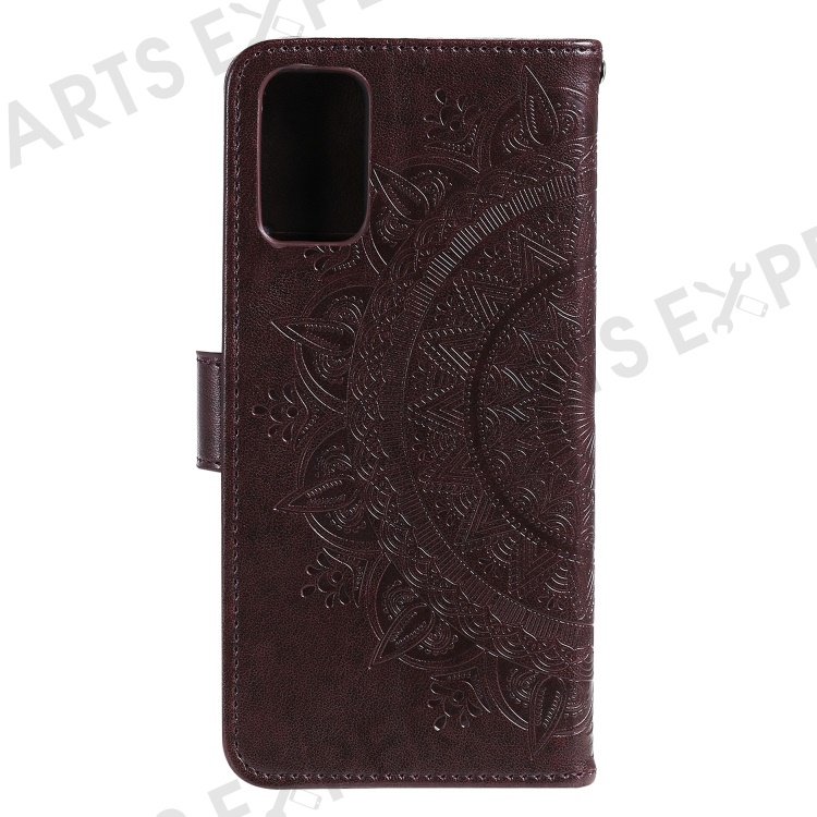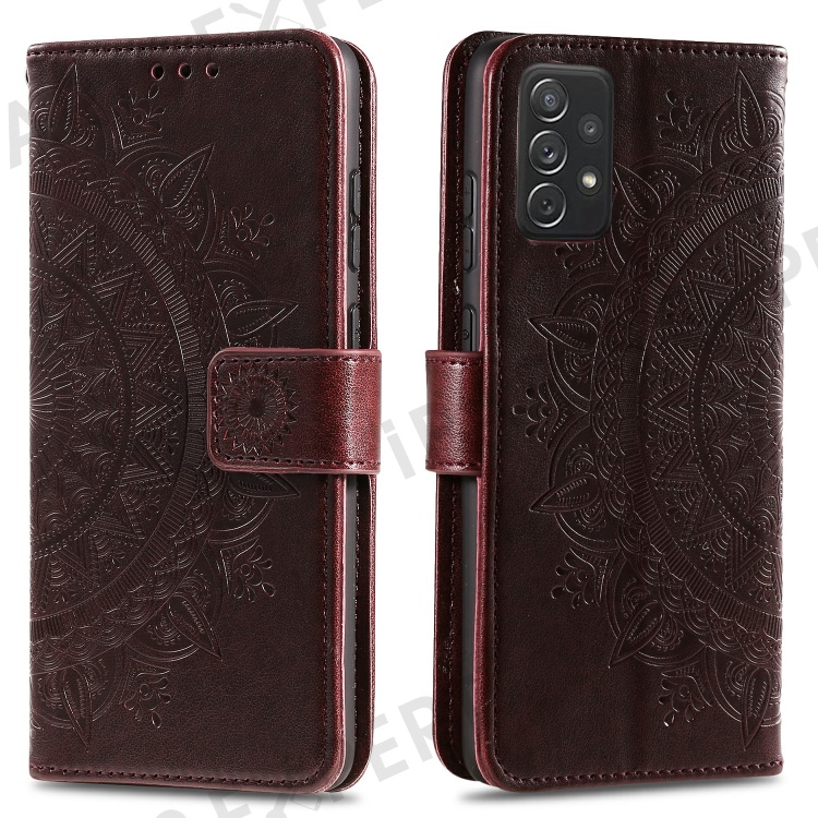 Imprinted Mandala Flower Wallet Leather Case with Strap for Samsung Galaxy A52 4G/5G / A52s 5G - Brown