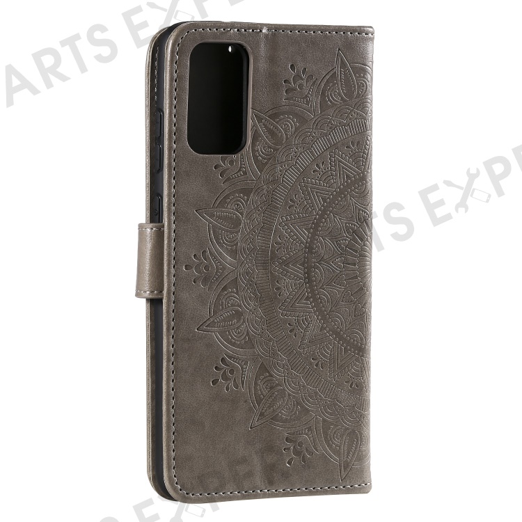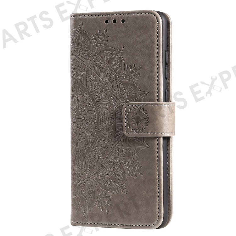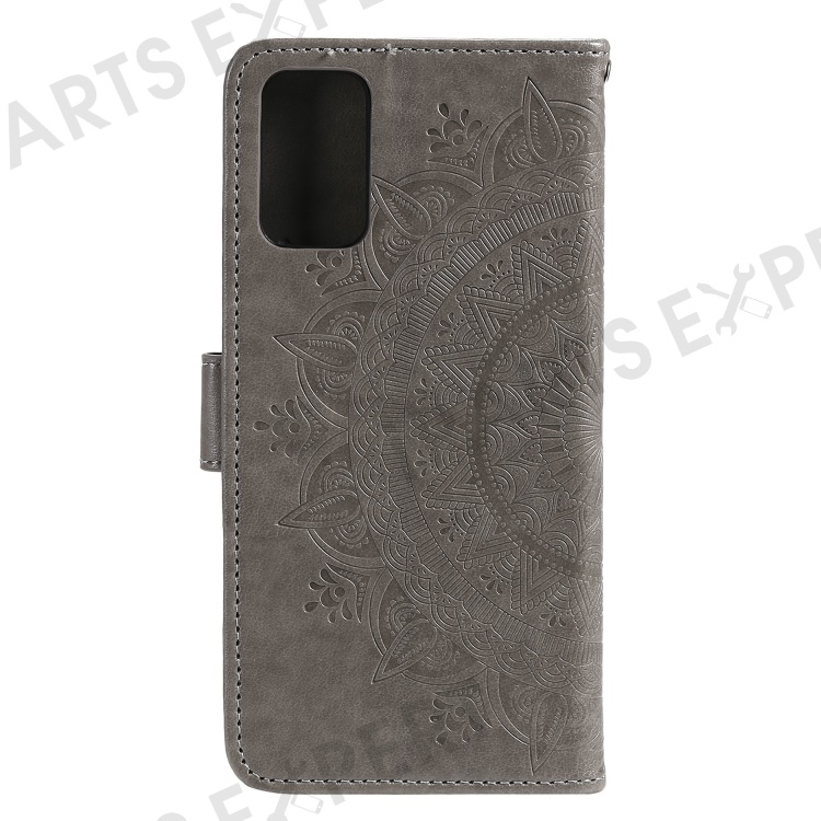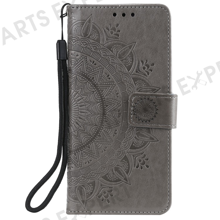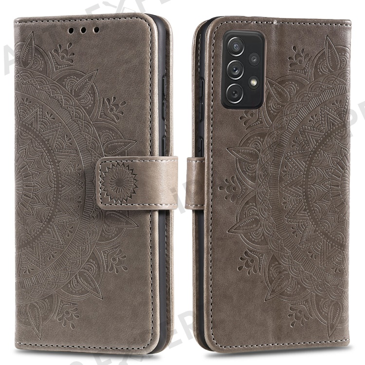 Imprinted Mandala Flower Wallet Leather Case with Strap for Samsung Galaxy A52 4G/5G / A52s 5G - Grey