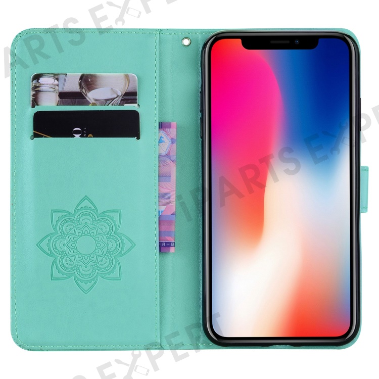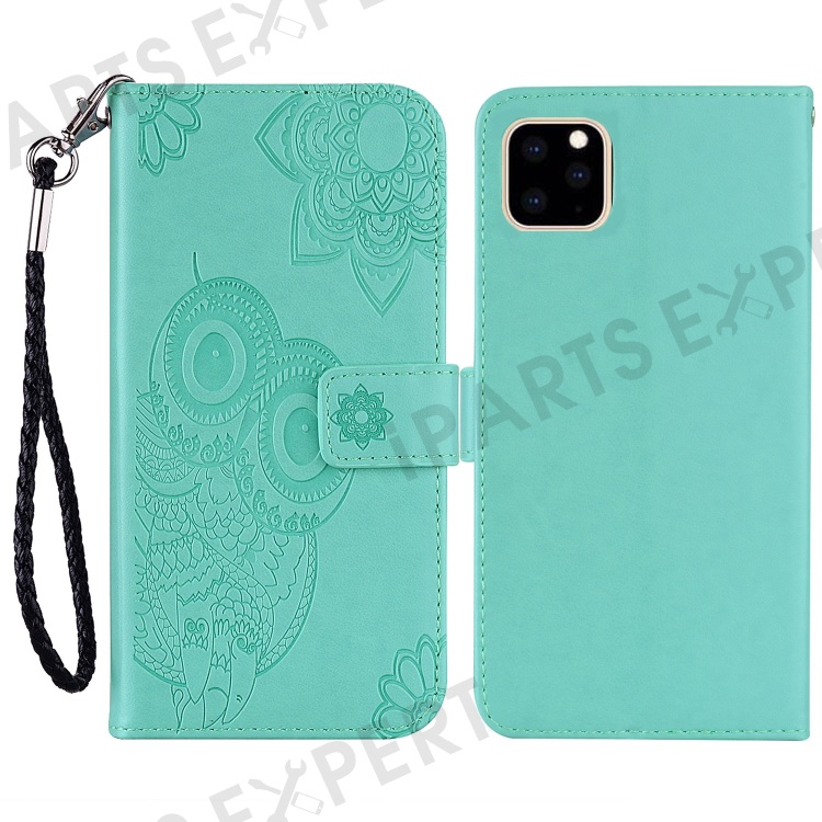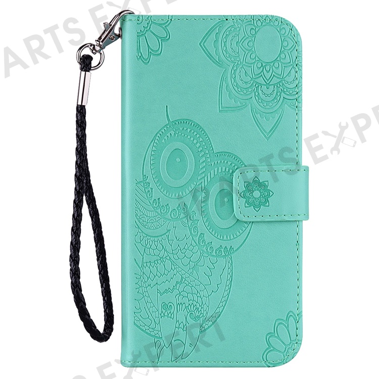 Imprinted Owl Flower Pattern Phone Cover for iPhone 14 6.1 inch, Foldable Stand Shockproof Leather Wallet Case - Cyan