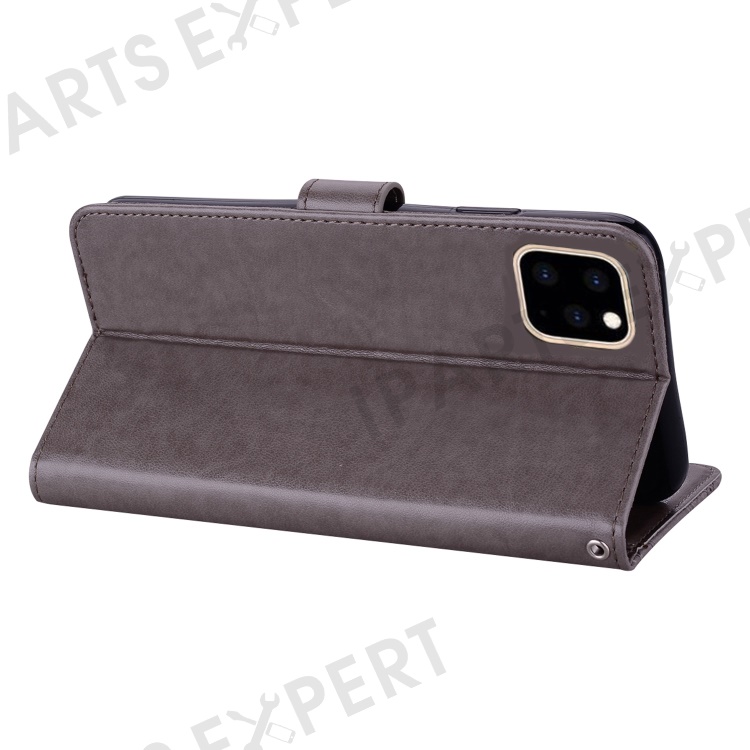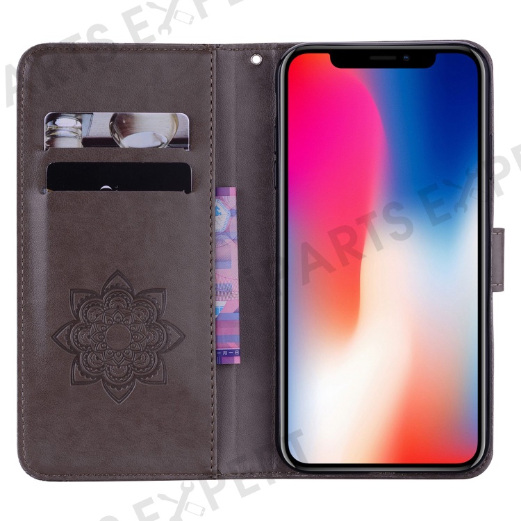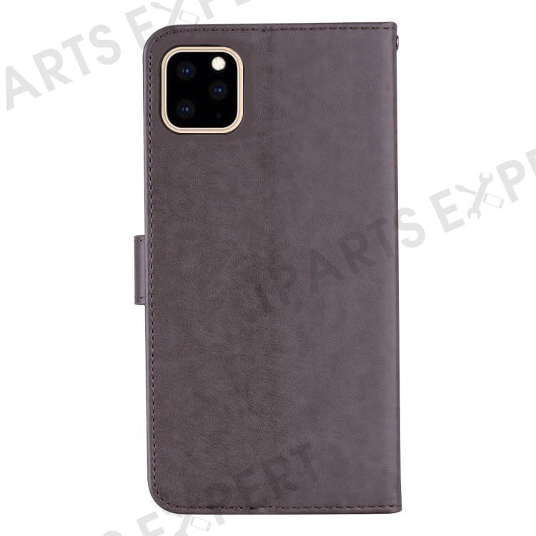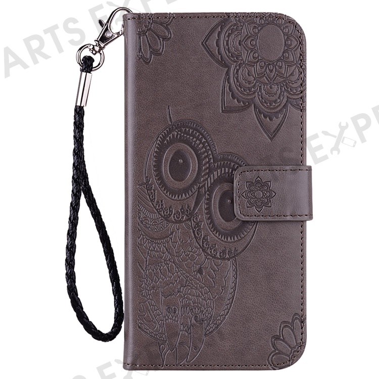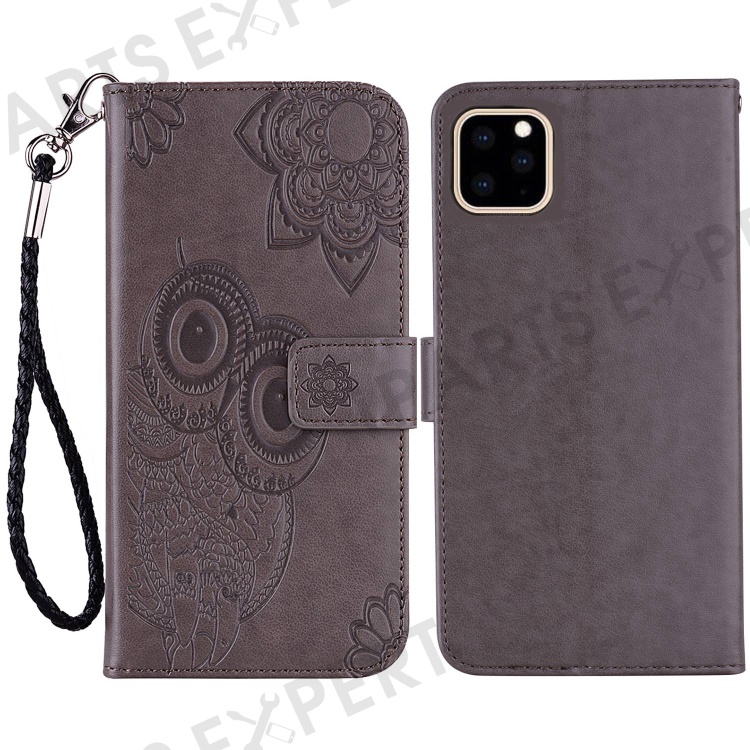 Imprinted Owl Flower Pattern Phone Cover for iPhone 14 6.1 inch, Foldable Stand Shockproof Leather Wallet Case - Grey
