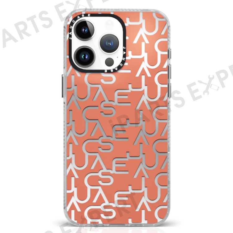 JAUCASE For iPhone 14 Pro Max Case Metal Lens Frame TPU+PC Matte Phone Cover Lettering - Orange