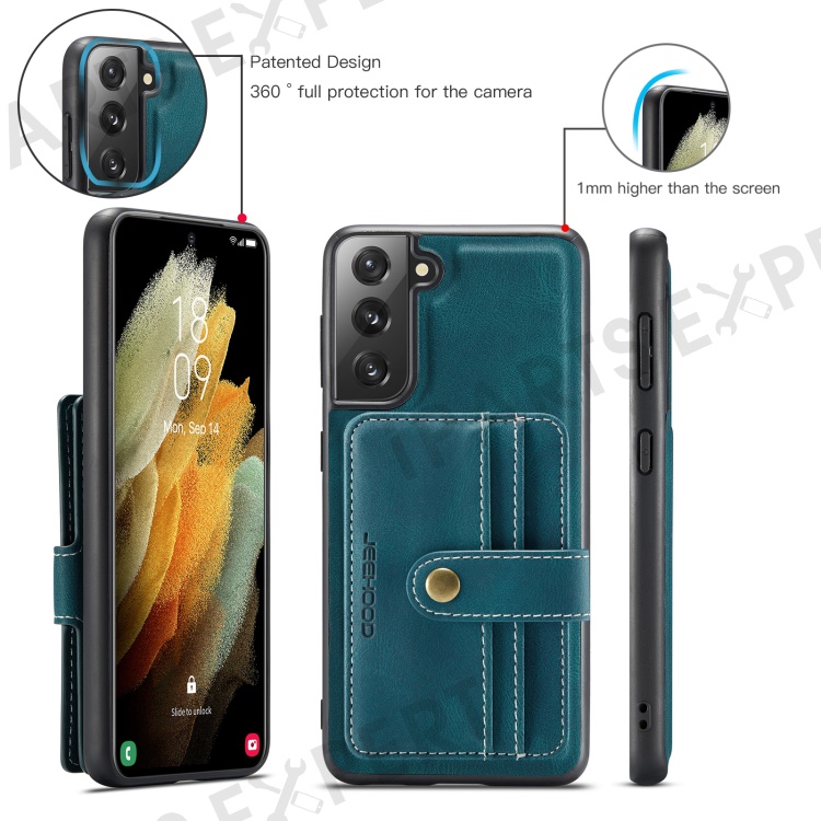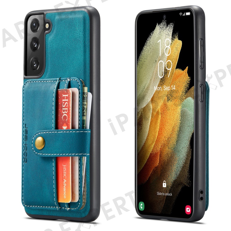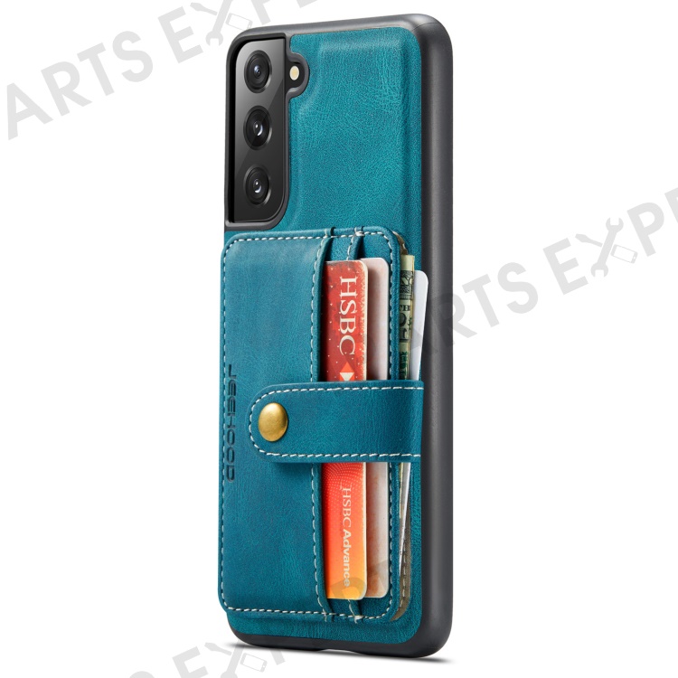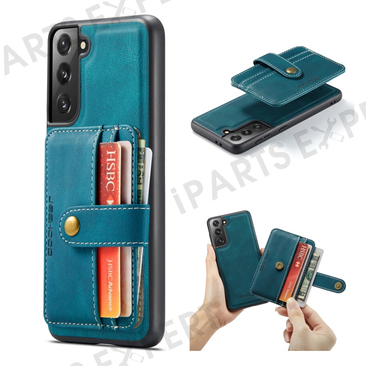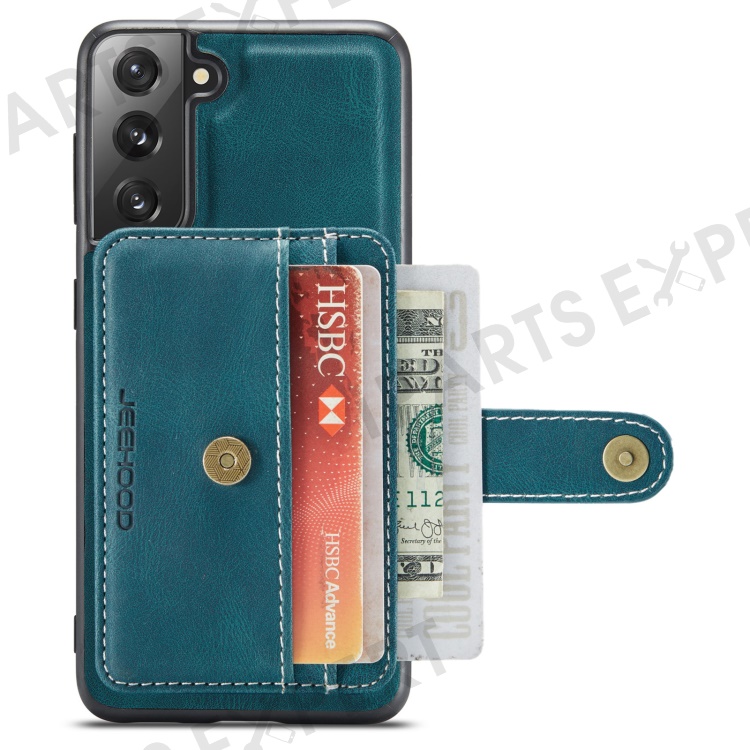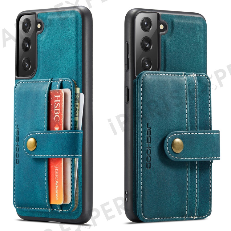 JEEHOOD Detachable RFID Blocking Magnetic Card Slots PU Leather Coated TPU Phone Case Cover for Samsung Galaxy S22+ 5G - Blue