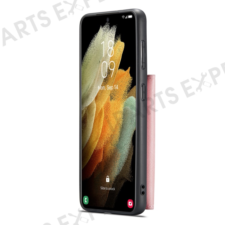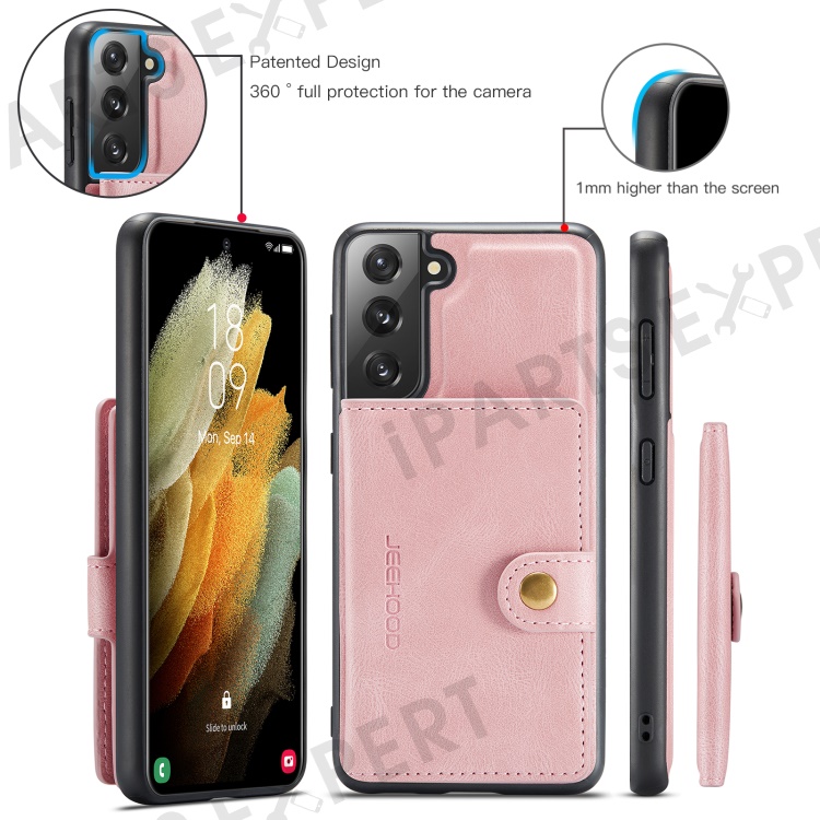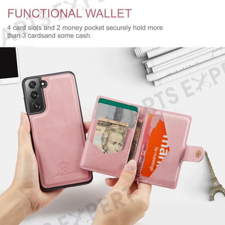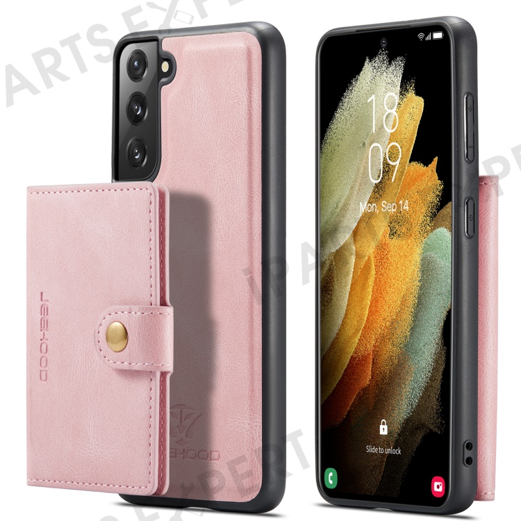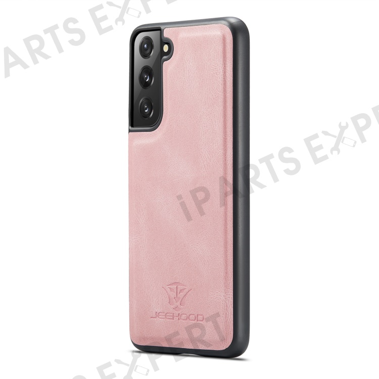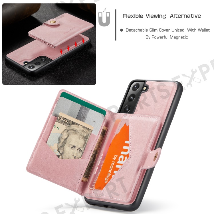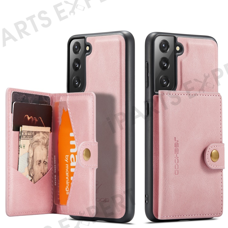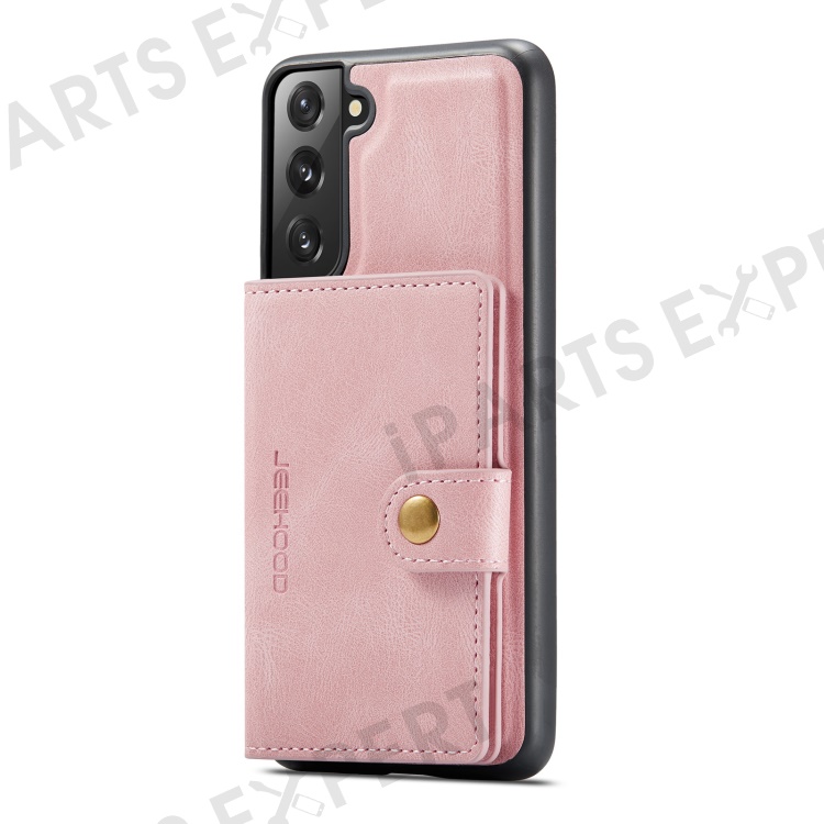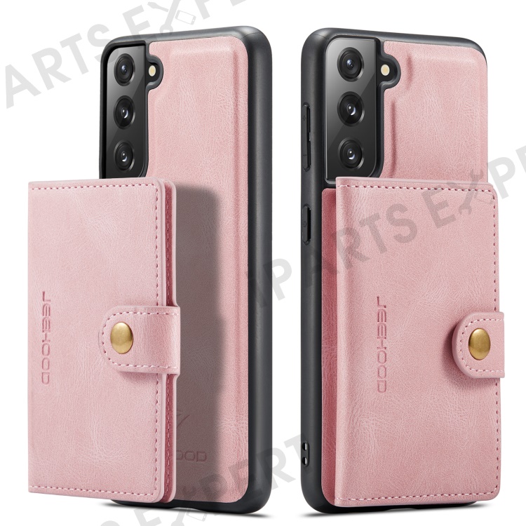JEEHOOD Magnetic Absorption Detachable Wallet + Leather Coated TPU Cover Phone Case with Kickstand for Samsung Galaxy S22+ 5G - Rose Gold
