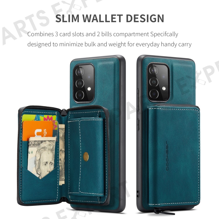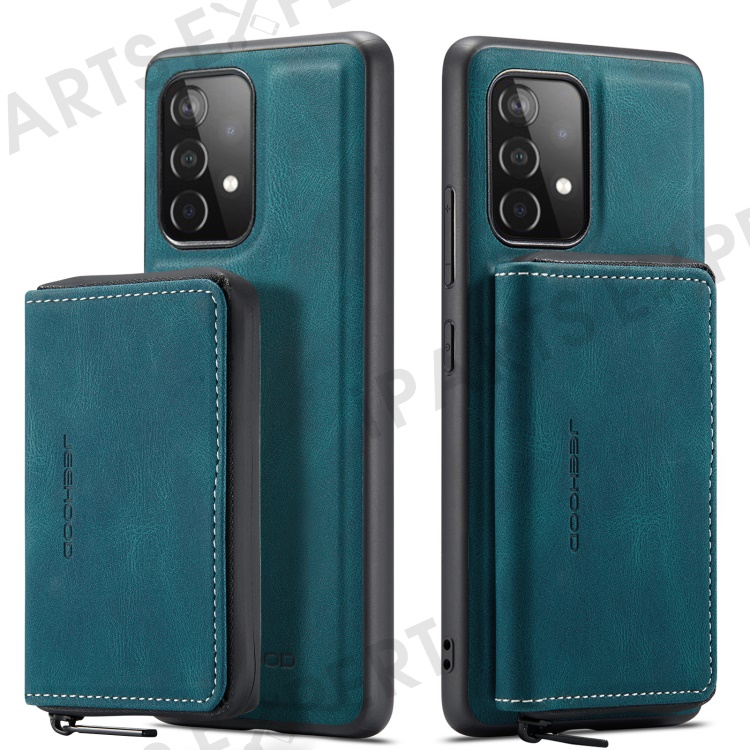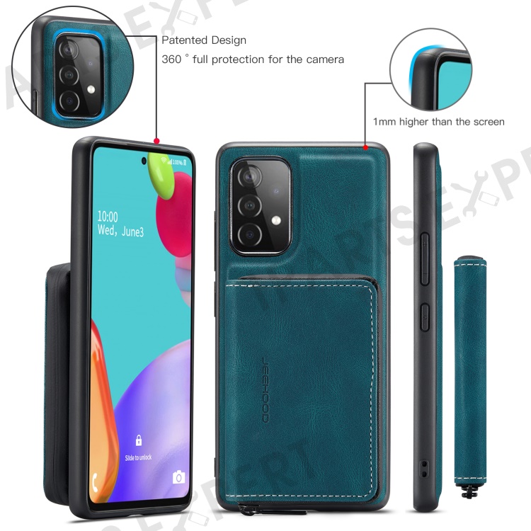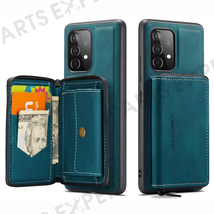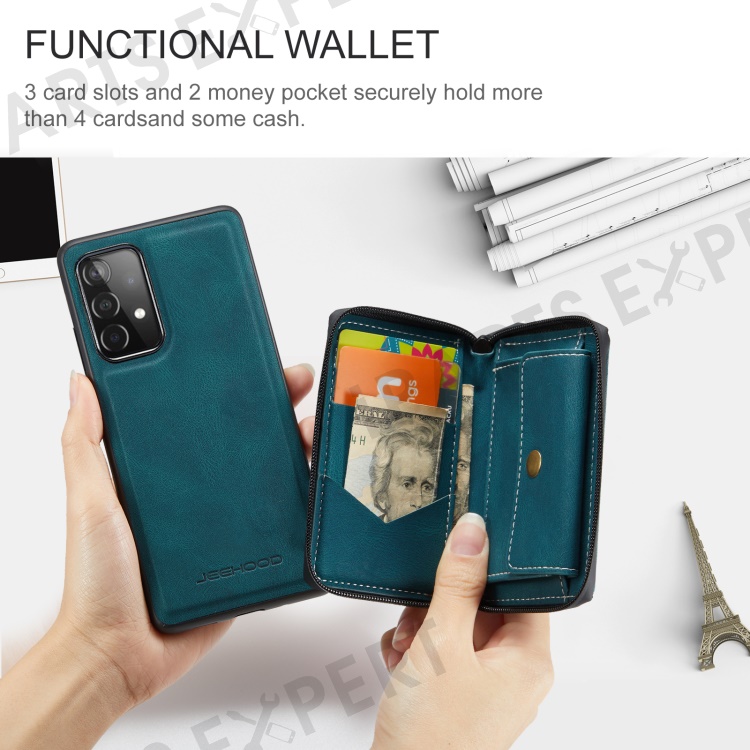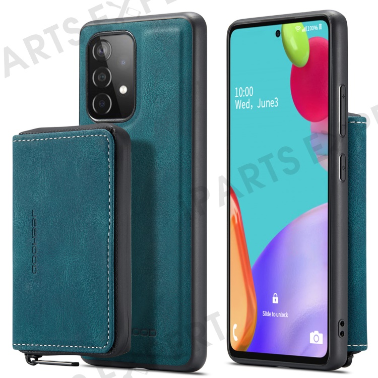 JEEHOOD Magnetic Detachable 2-in-1 Zippered Wallet Leather Hybrid Case with Kickstand for Samsung Galaxy A72 5G/4G - Blue
