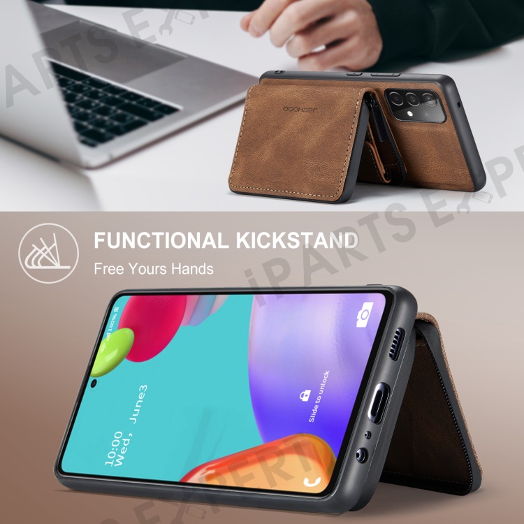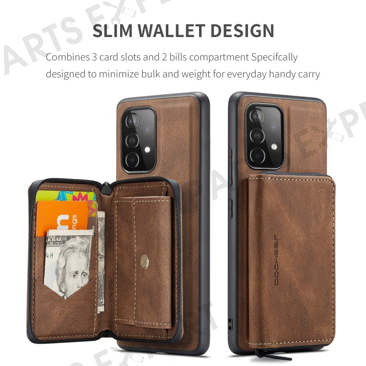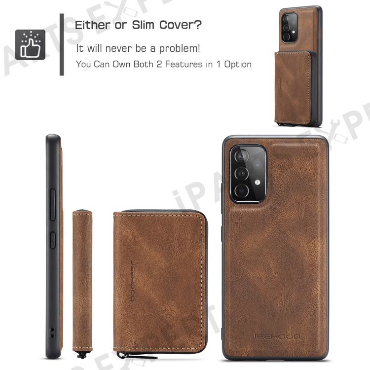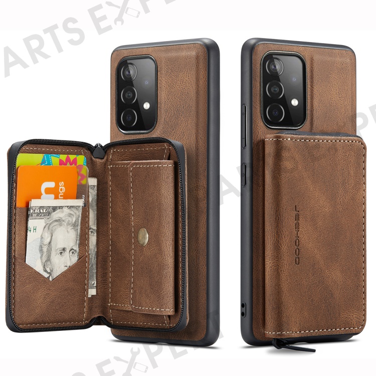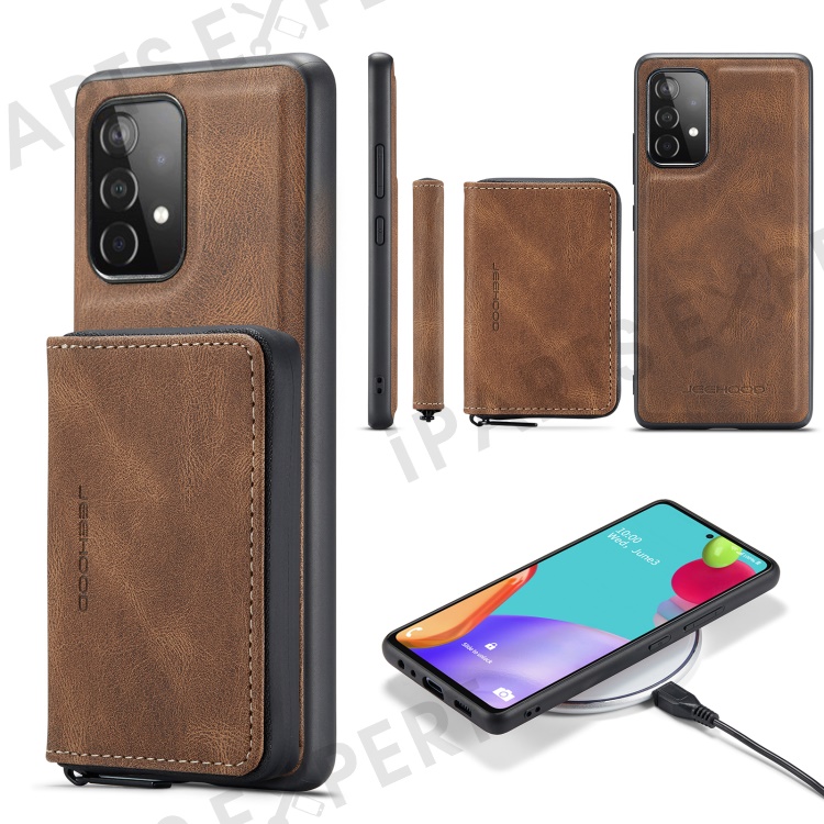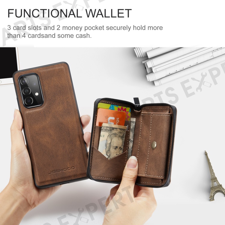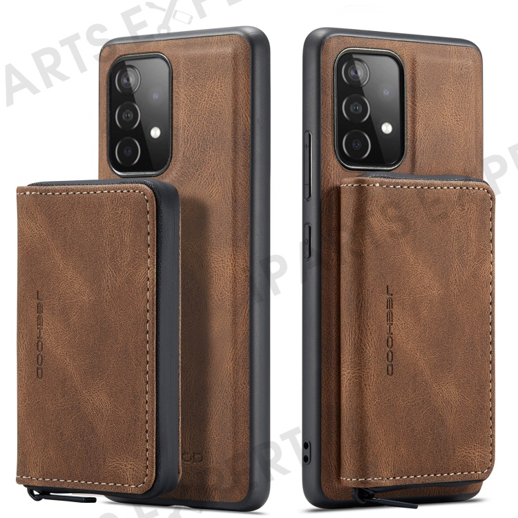 JEEHOOD Magnetic Detachable 2-in-1 Zippered Wallet Leather Hybrid Case with Kickstand for Samsung Galaxy A72 5G/4G - Brown