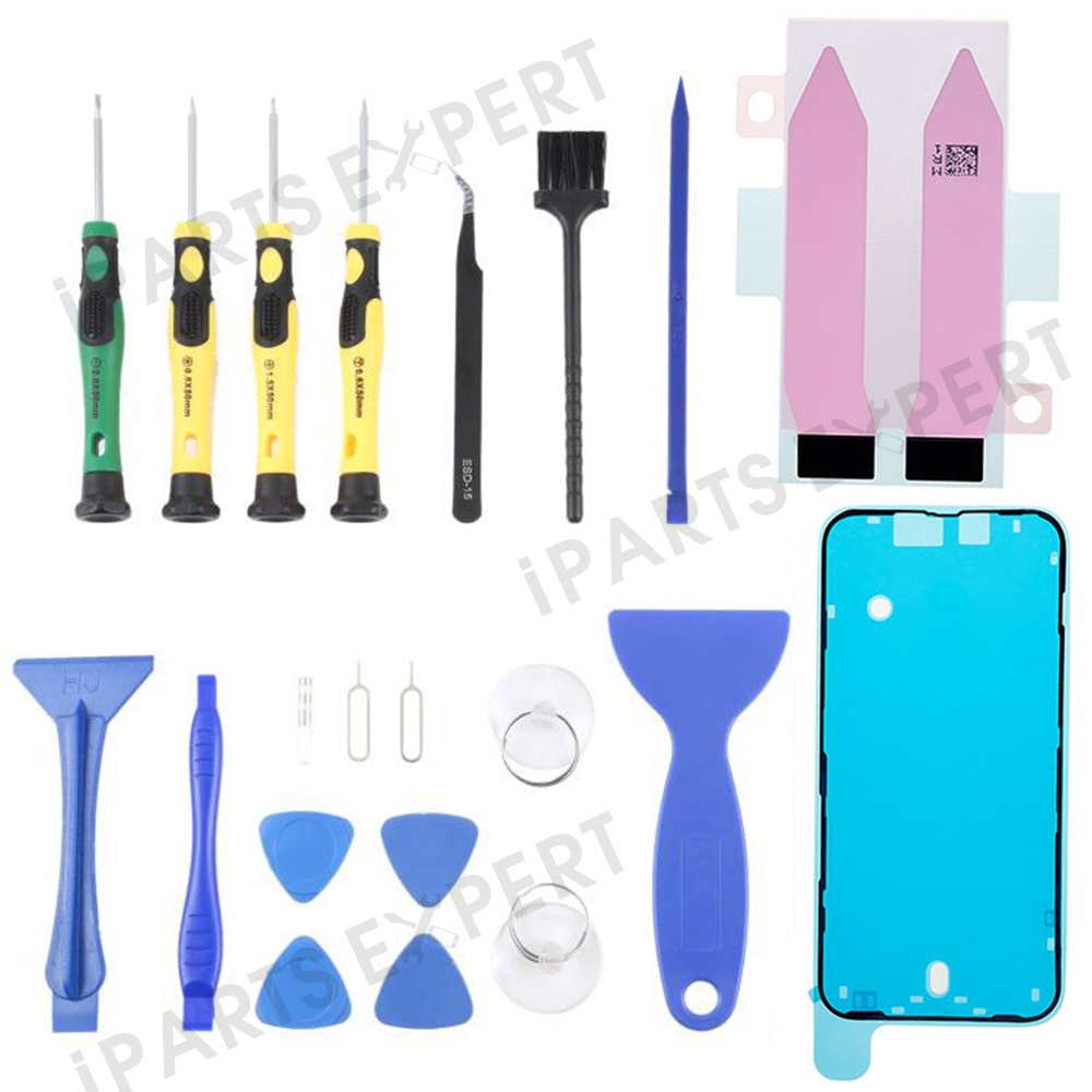 - 【21 in 1 Complete Repair Kit】Comprehensive tool set includes precision screwdrivers, prying tools, suction cups, battery adhesive strips, and waterproof sealing components for professional phone repair.
