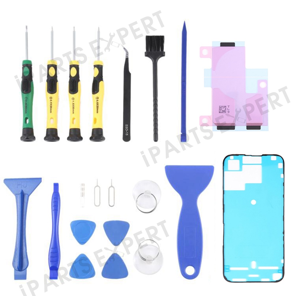 - 【21 in 1 Complete Repair Kit】Comprehensive tool set includes precision screwdrivers, prying tools, suction cups, battery adhesive strips, and waterproof sealing components for professional phone repair.
