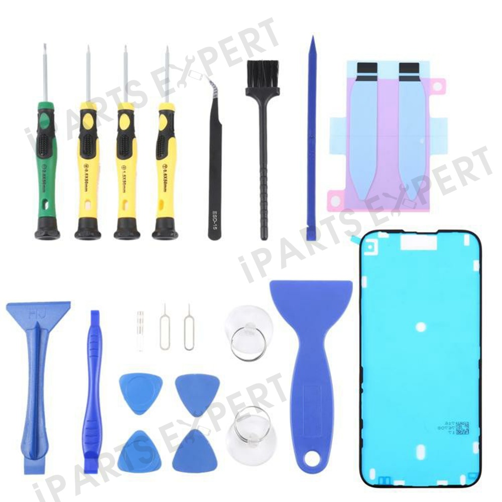 - 【21 in 1 Complete Repair Kit】Comprehensive tool set includes precision screwdrivers, prying tools, suction cups, battery adhesive strips, and waterproof sealing components for professional phone repair.