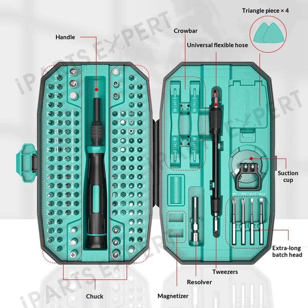 - 【Comprehensive 152 in 1 Precision Set】Complete screwdriver toolkit with 152 precision bits covering Phillips, flathead, Torx, hex, triangle, Y-type, U-type, and specialty bits for all electronic device repairs.