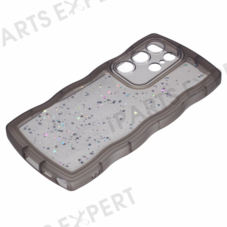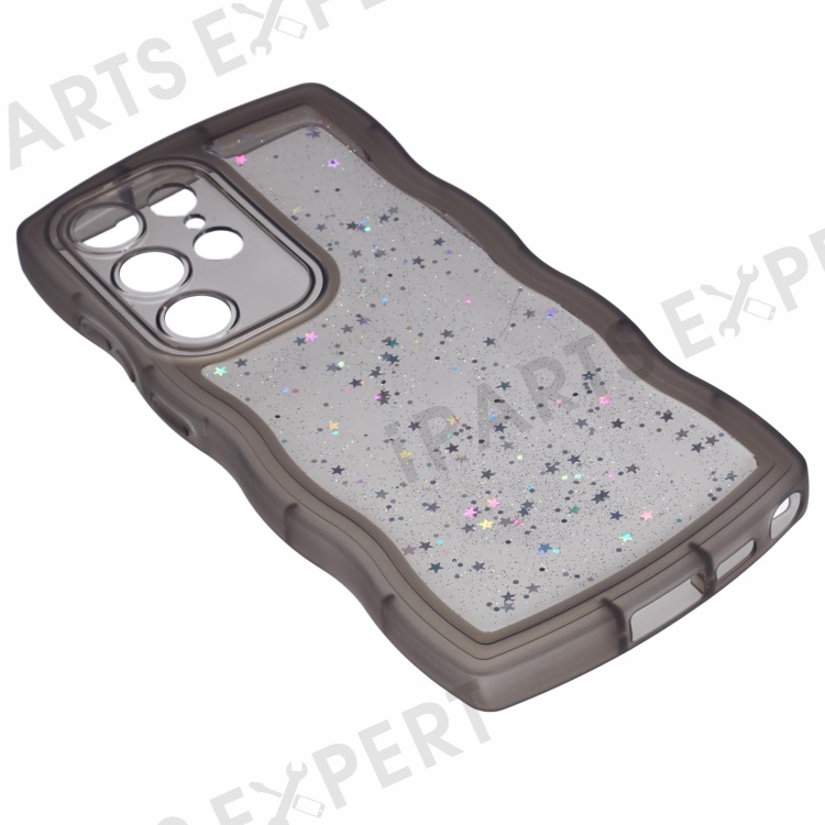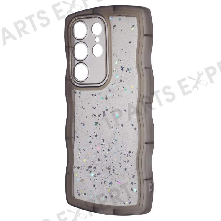 JTW Series for Samsung Galaxy S22 Ultra 5G Cell Phone Case TPU Glitter Sparkle Wavy Edge Cover - Transparent Black