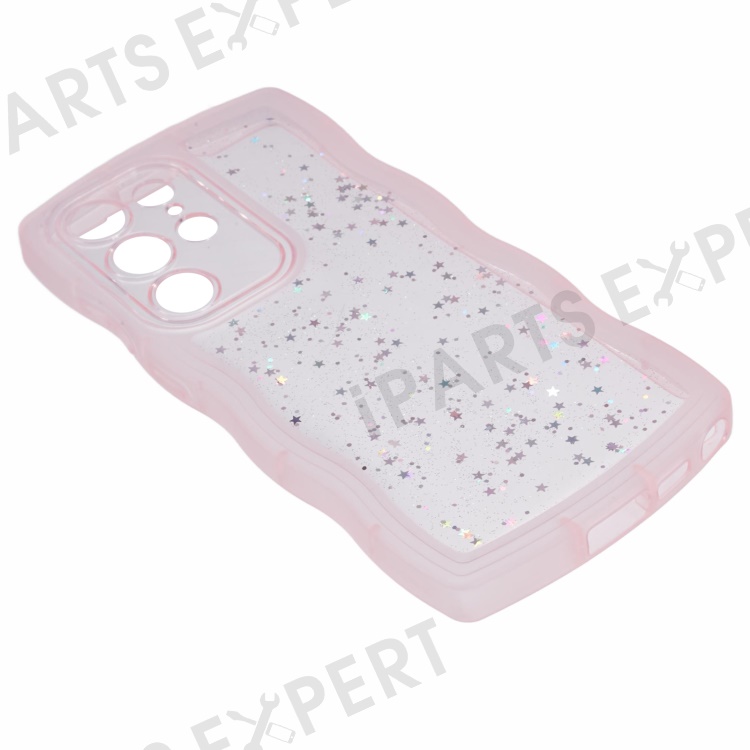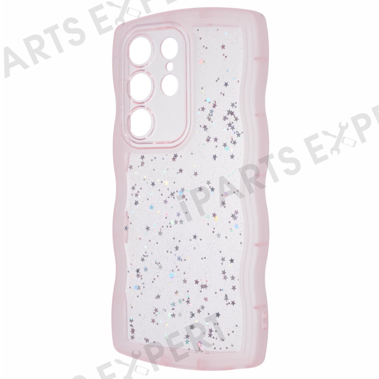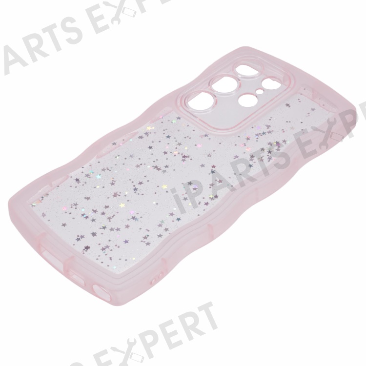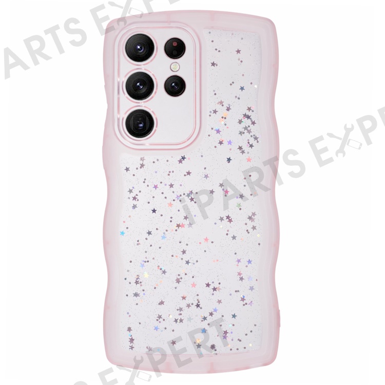 JTW Series for Samsung Galaxy S22 Ultra 5G Cell Phone Case TPU Glitter Sparkle Wavy Edge Cover - Transparent Pink