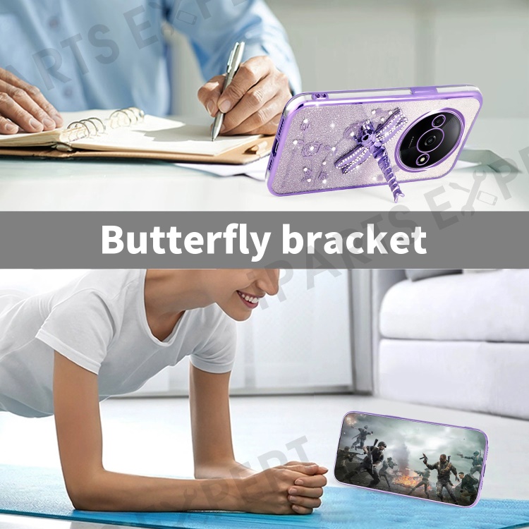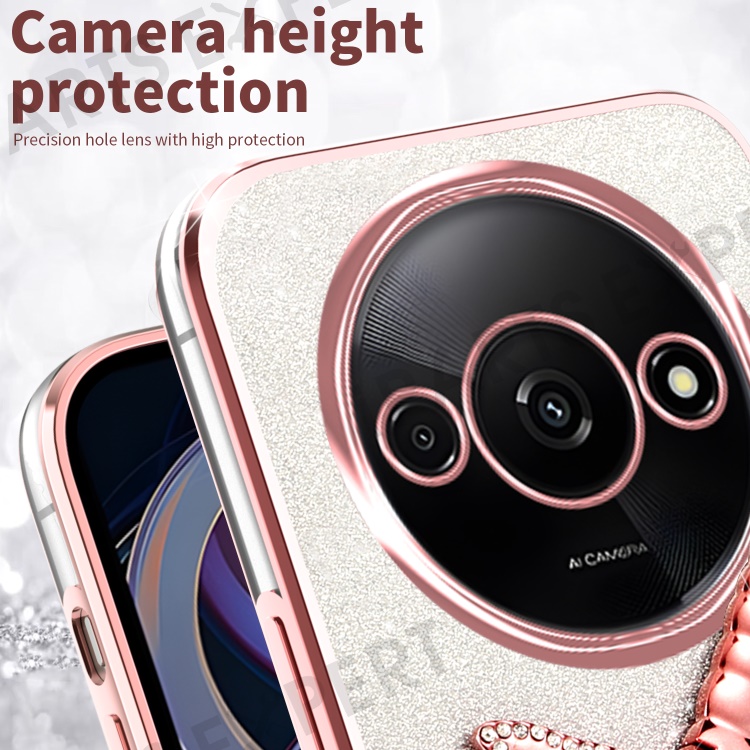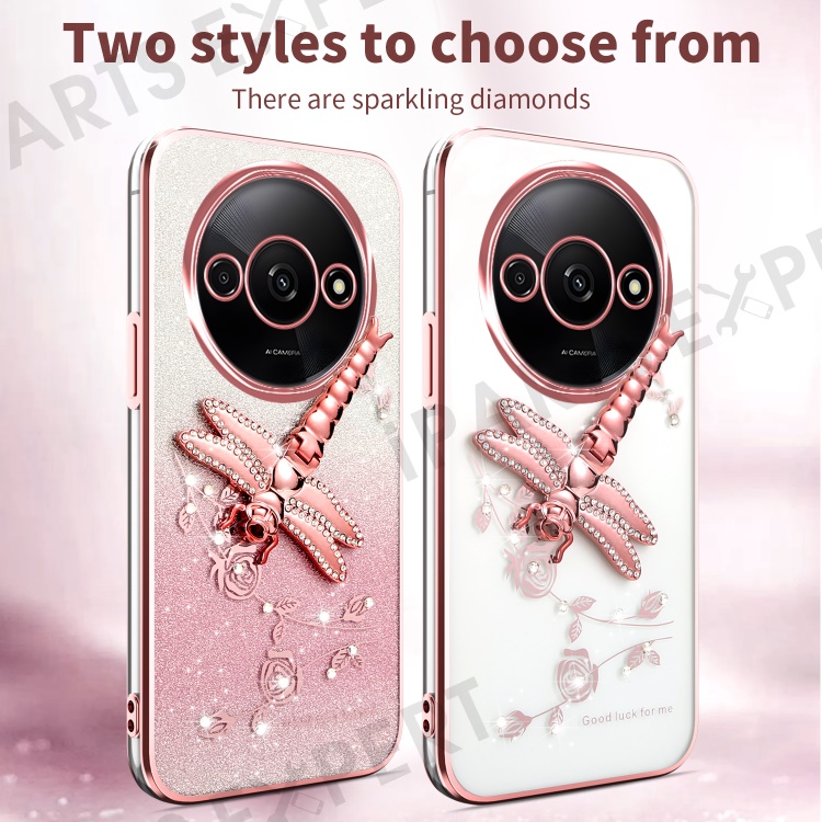 KADEM Case For Xiaomi Redmi A3 4G / A3x 4G / Poco C61 4G Dragonfly Kickstand TPU Flowers Glitter Phone Cover - Blue