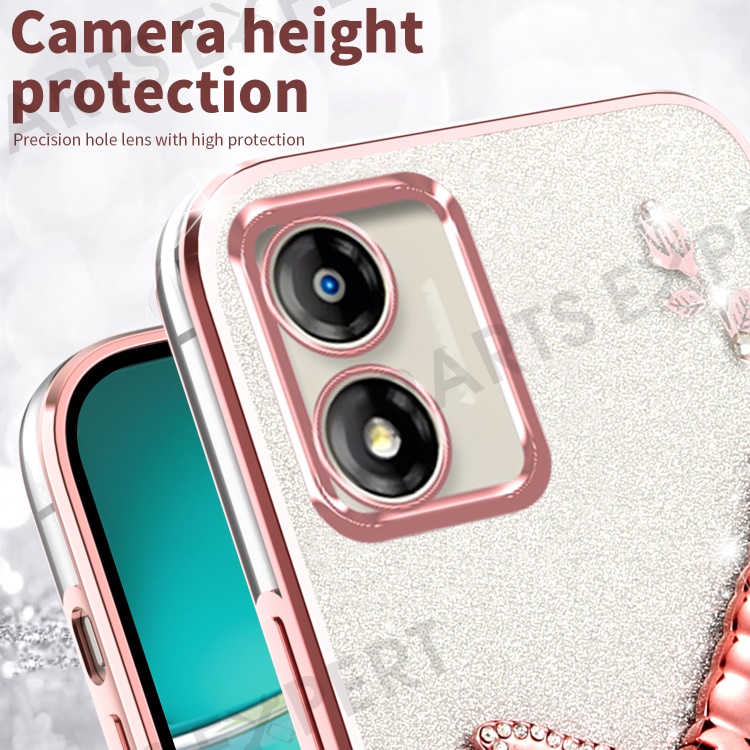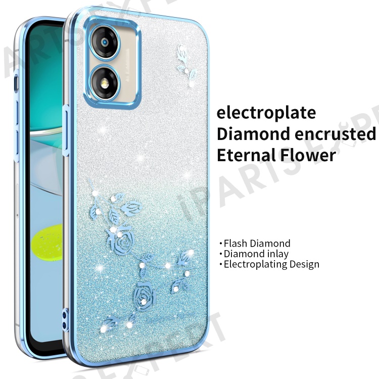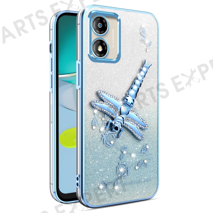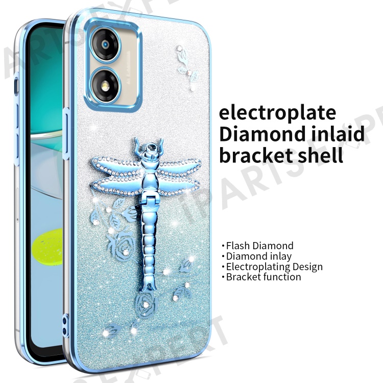 KADEM For Motorola Moto E13 4G Case Dragonfly Kickstand TPU Flowers Glitter Phone Cover - Blue