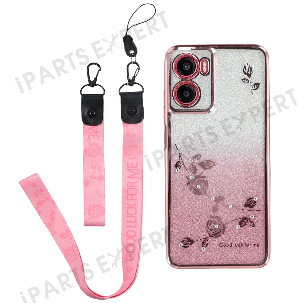 KADEM For Motorola Moto G05 4G / E15 4G Case Flower Pattern TPU Gradient Phone Cover with Lanyards - Rose Gold
