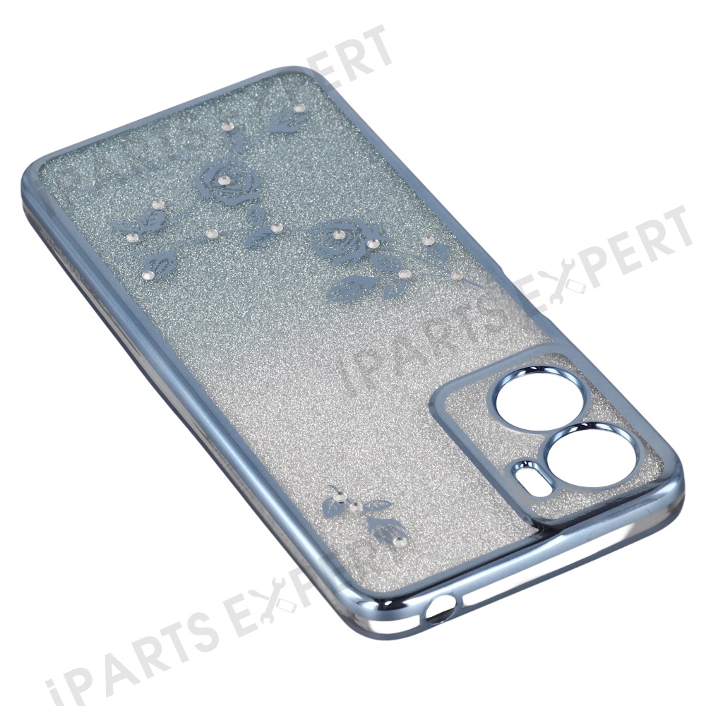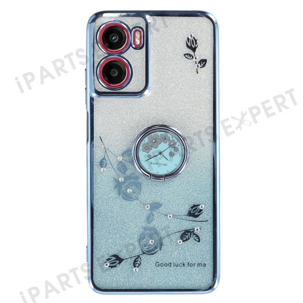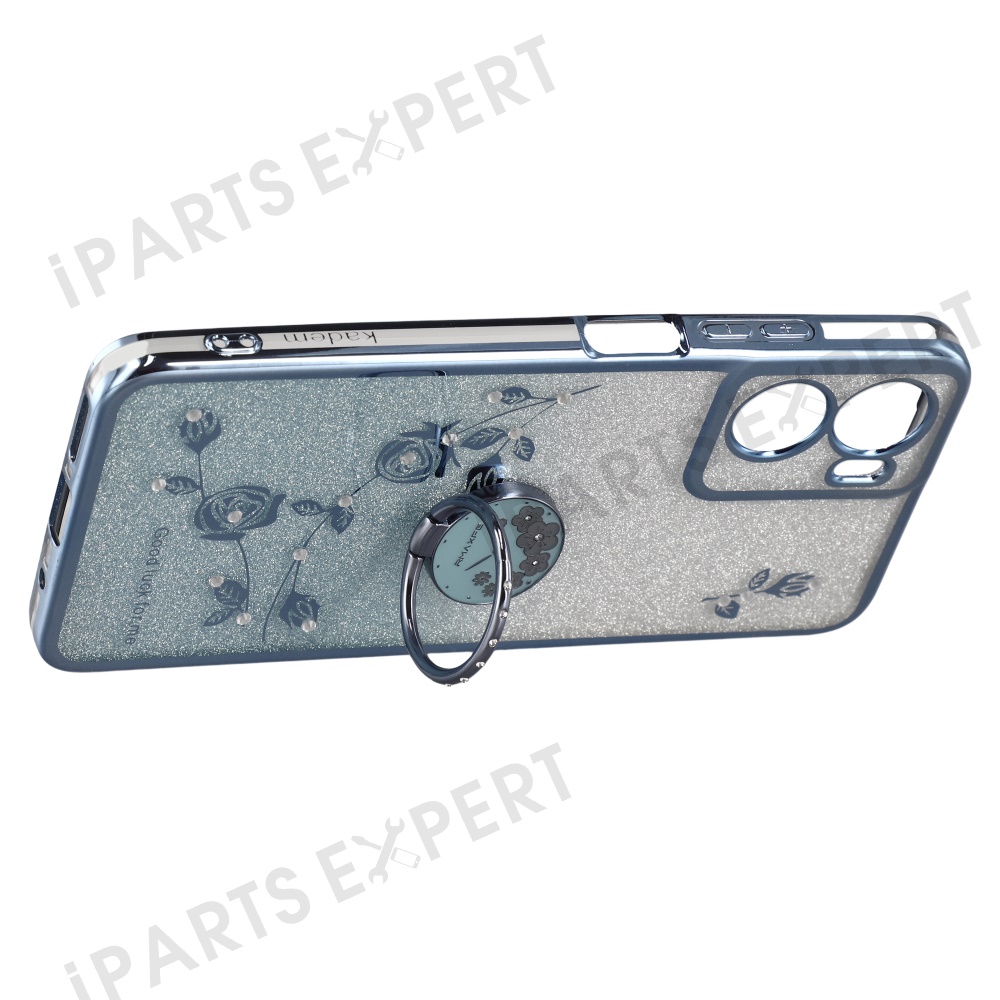 KADEM For Motorola Moto G05 4G / E15 4G Case Ring Kickstand TPU Flowers Phone Cover Gradient Glitter - Blue