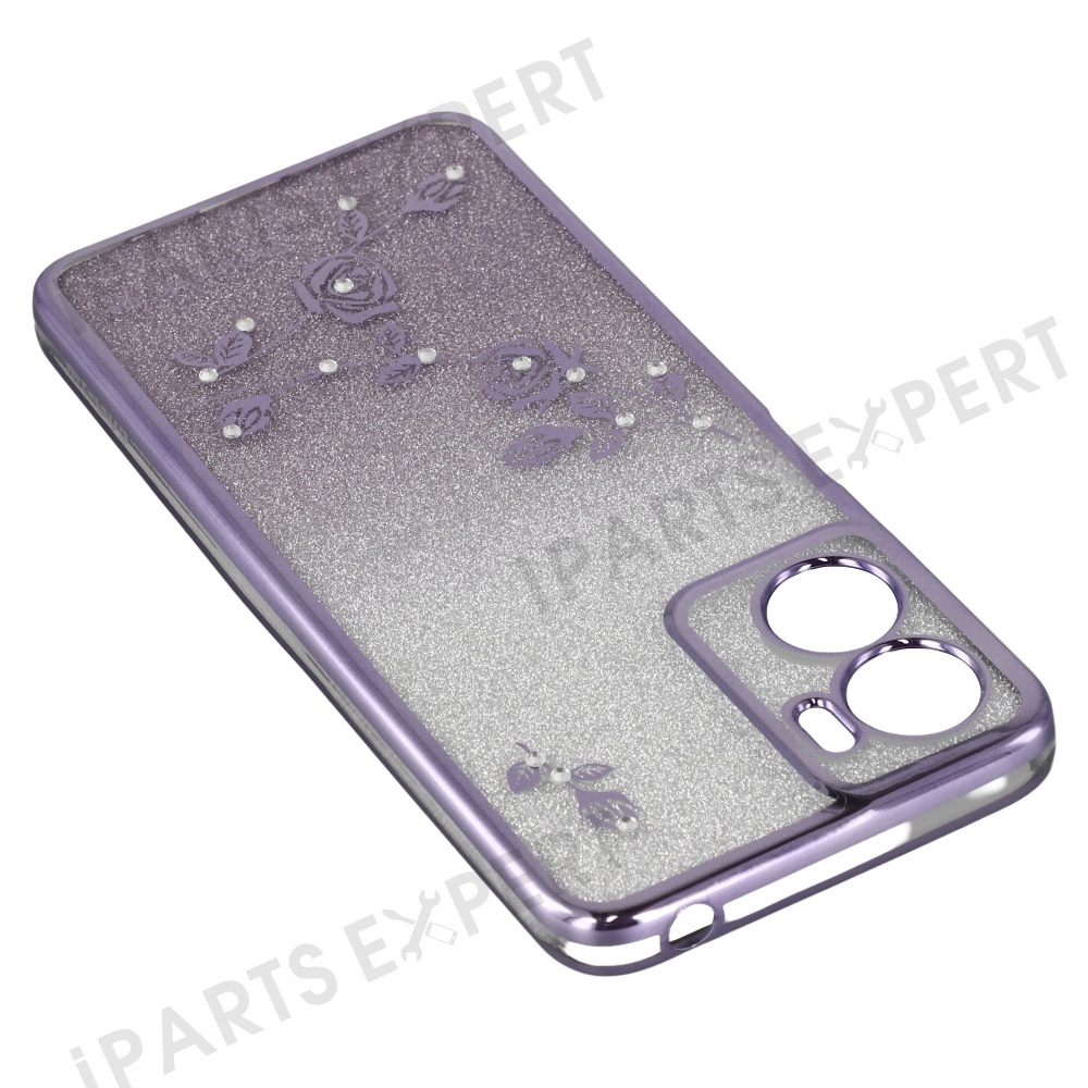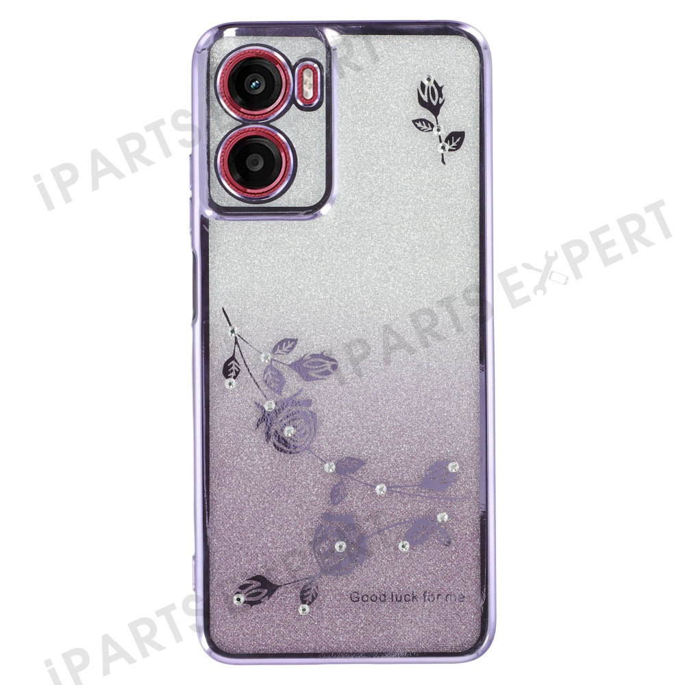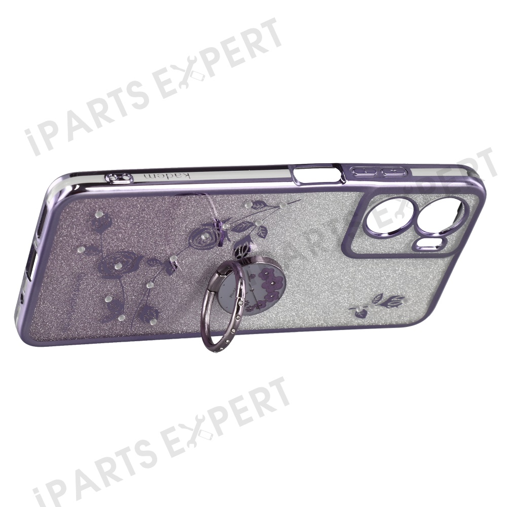 KADEM For Motorola Moto G05 4G / E15 4G Case Ring Kickstand TPU Flowers Phone Cover Gradient Glitter - Purple