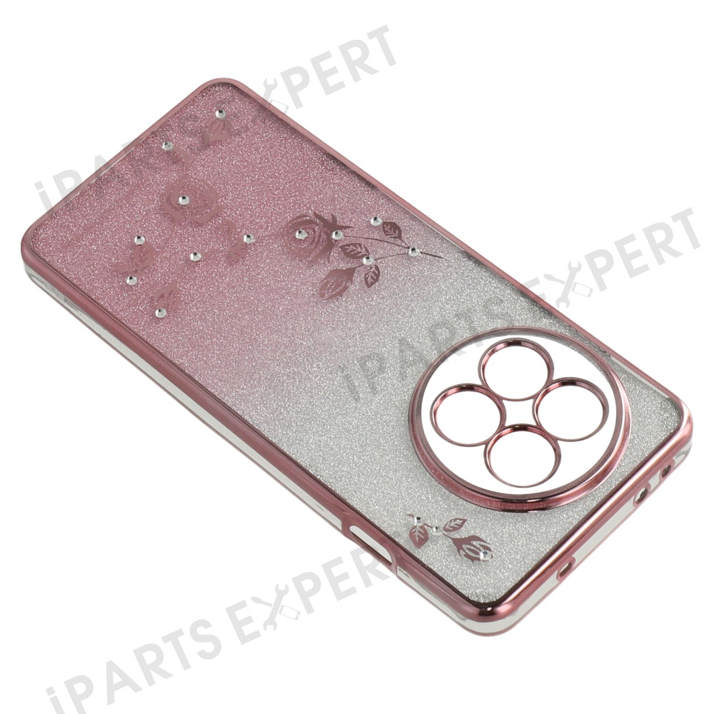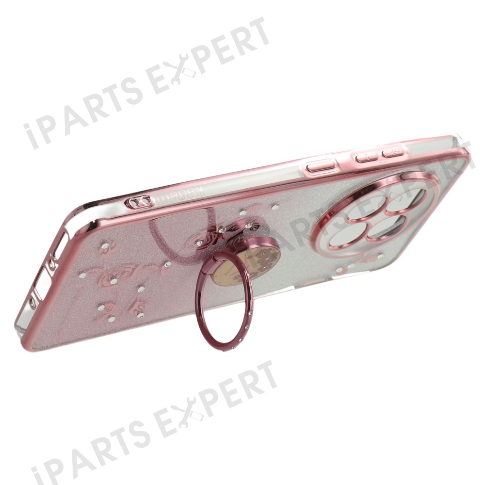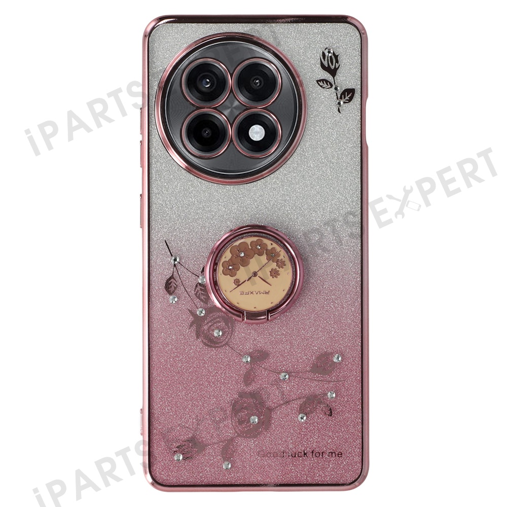 KADEM For OnePlus Ace 5 5G / 13R 5G Case Ring Kickstand TPU Flowers Phone Cover Gradient Glitter - Rose Gold