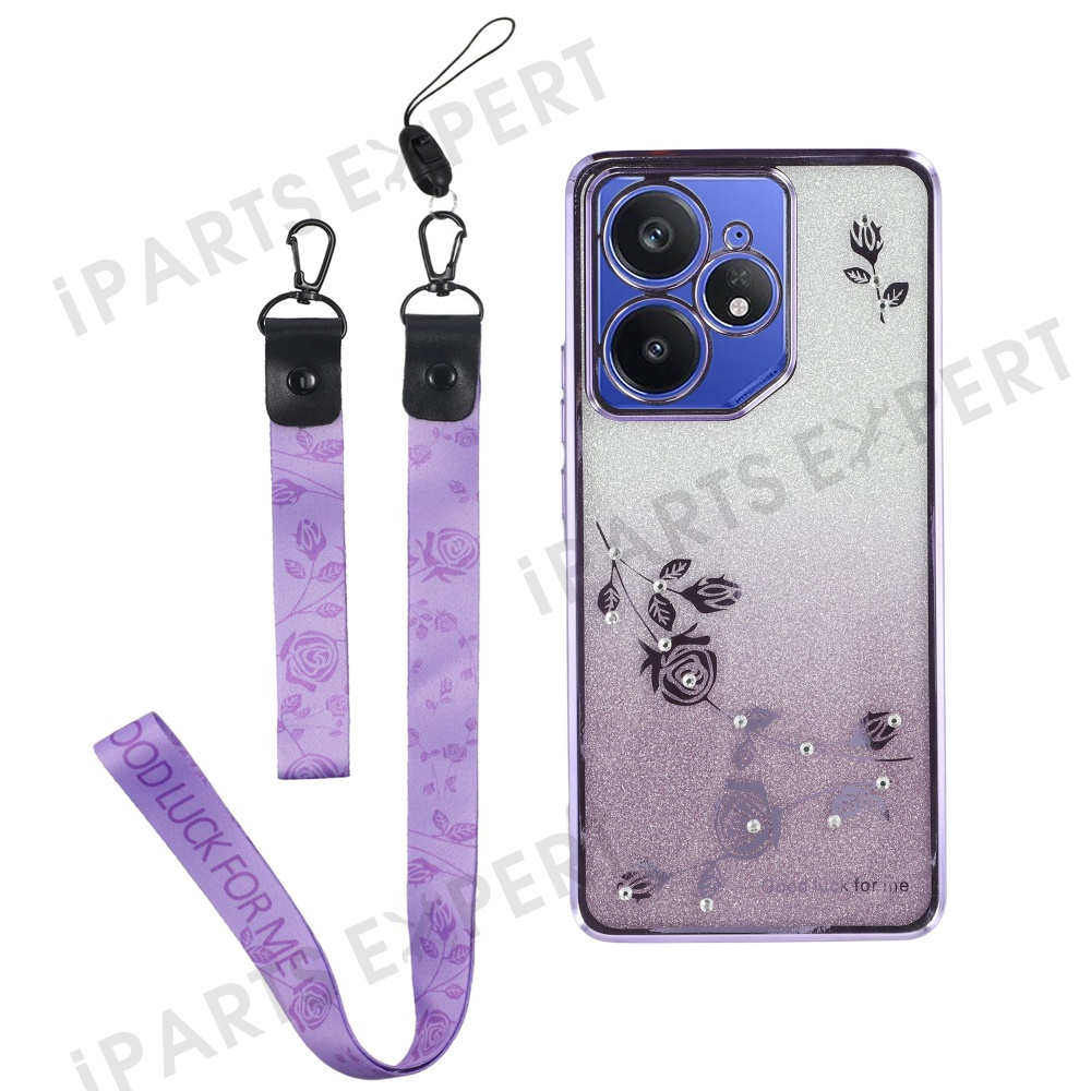 KADEM For Realme Neo7 5G Case Flower Pattern TPU Gradient Phone Cover with Lanyards - Purple