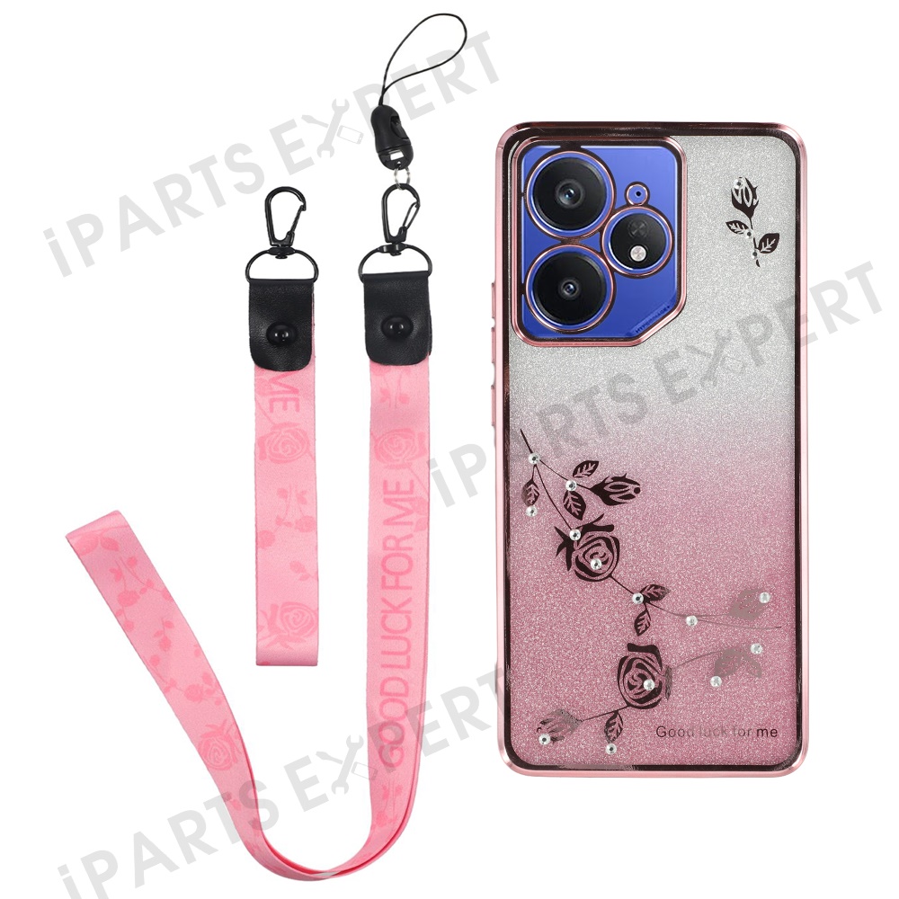 KADEM For Realme Neo7 5G Case Flower Pattern TPU Gradient Phone Cover with Lanyards - Rose Gold
